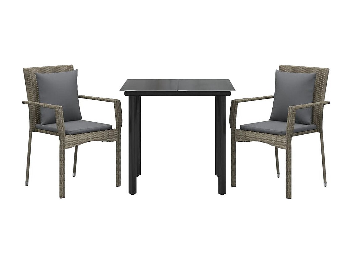Zyldr Set comedor jardín 3 pzas y cojines ratán sintético negro gris