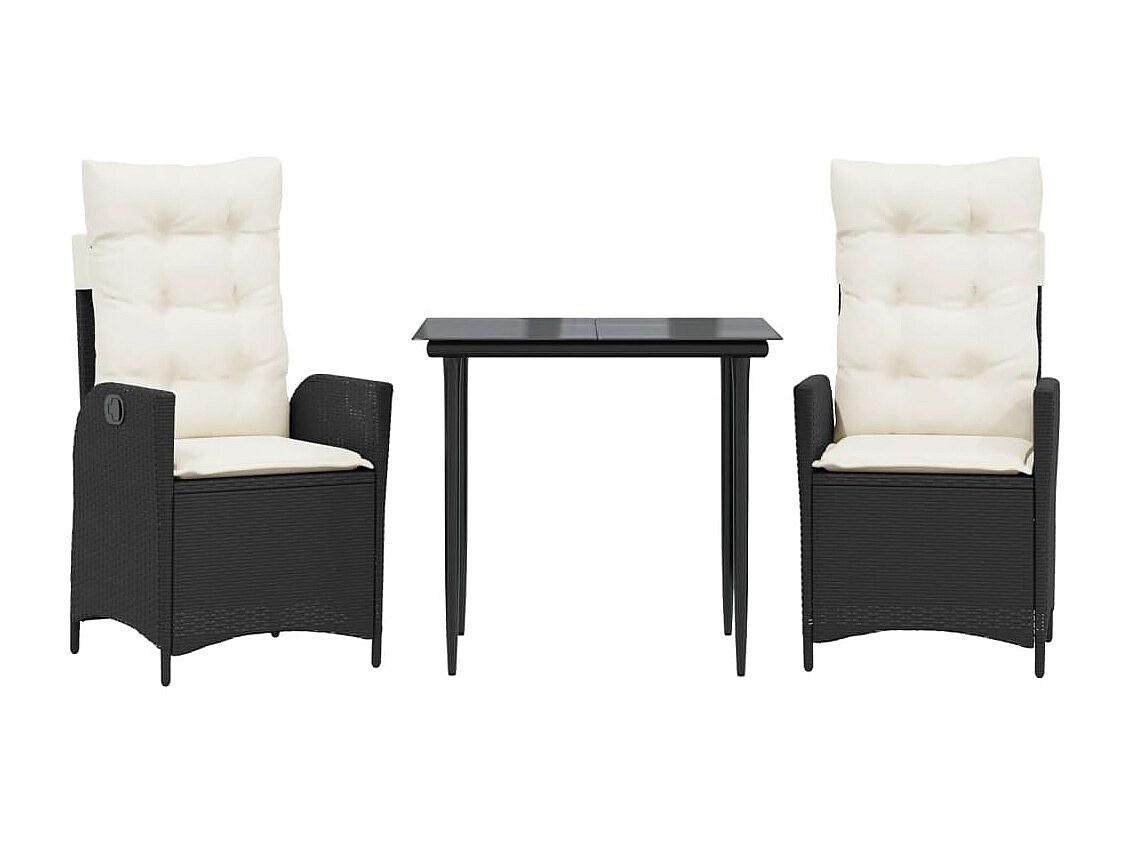 Serafino Juego de comedor de jardín 3 piezas con cojines negro