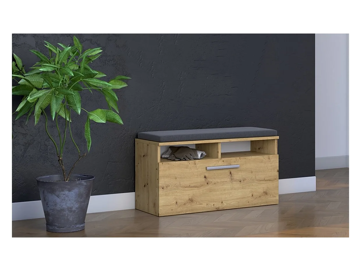 Banco zapatero acabado nogal 3 compartimentos 1 puerta con frente de tela L100 cm - JETSON