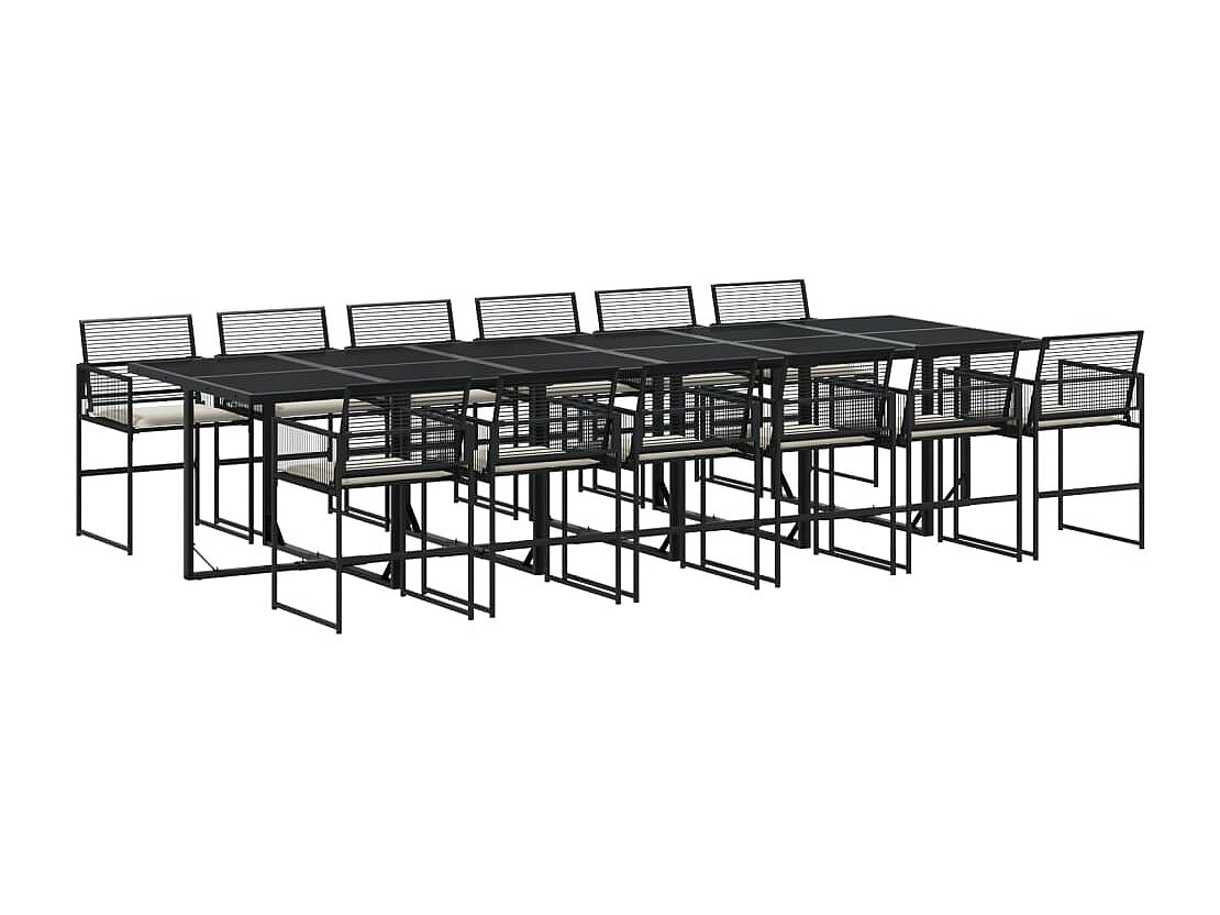 Francis Juego de comedor de jardín 13 pzas con cojines textileno negro