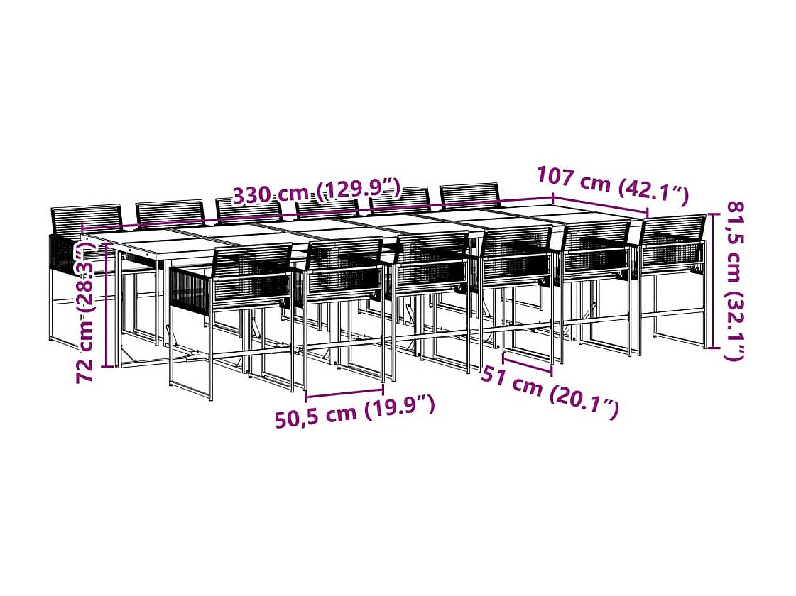 Dario Paolo Juego de comedor de jardín 13 pzas con cojines textileno negro