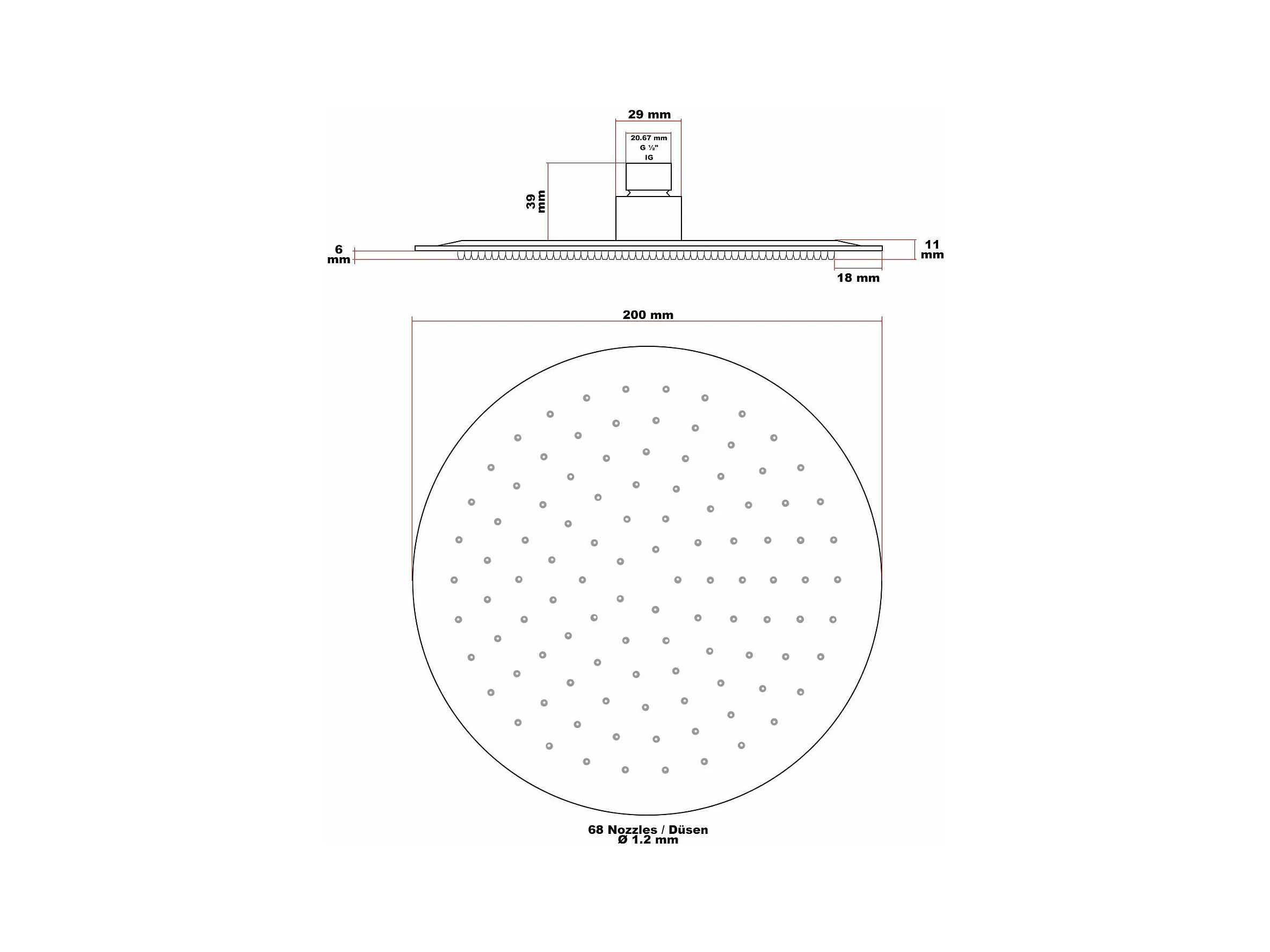Rociador de ducha redondo rociador de ducha con chorro de lluvia 20 cm acero inoxidable 16_0000628