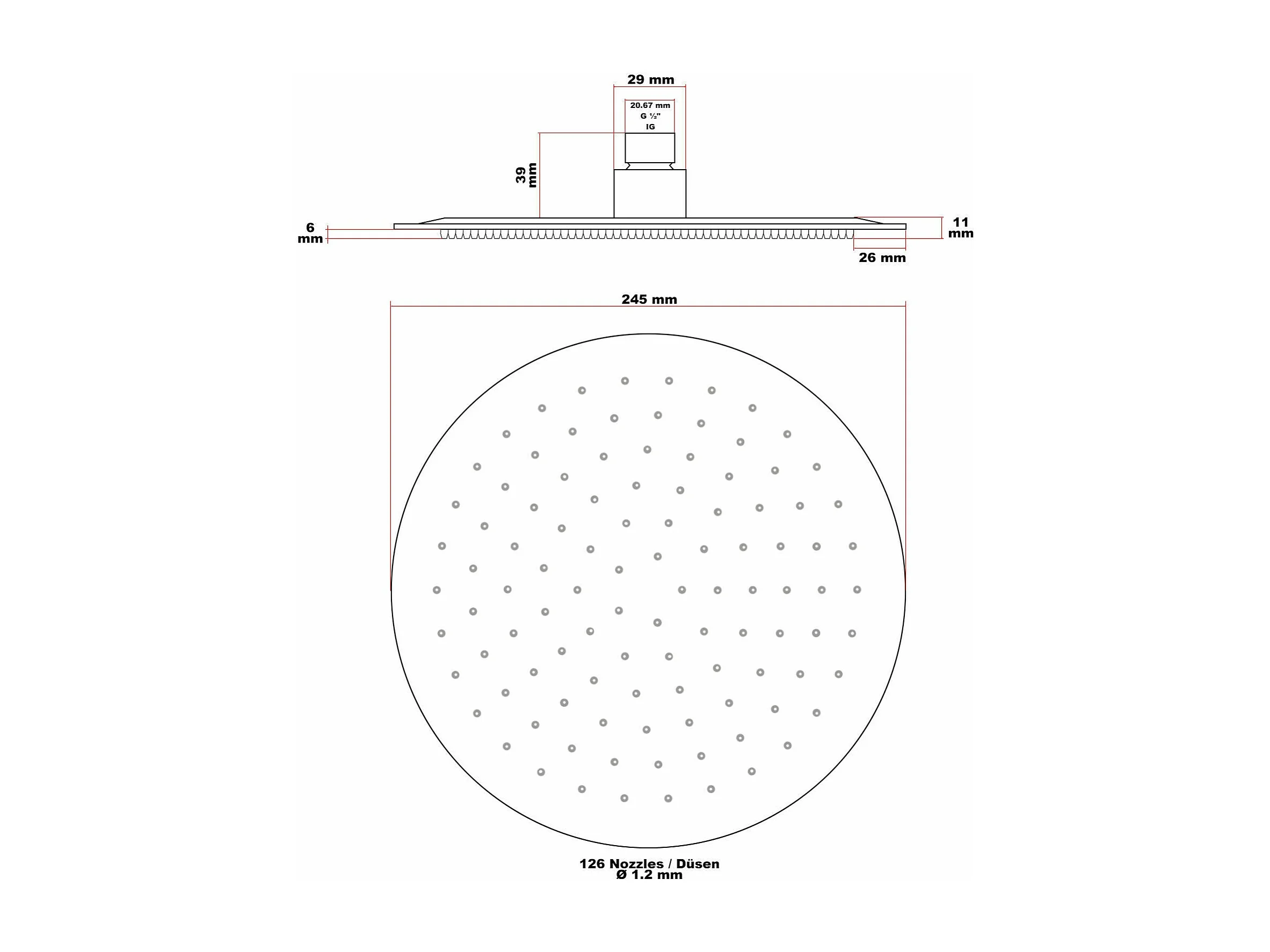 Rociador de ducha redondo rociador de ducha con chorro de lluvia 25 cm acero inoxidable 16_0000629