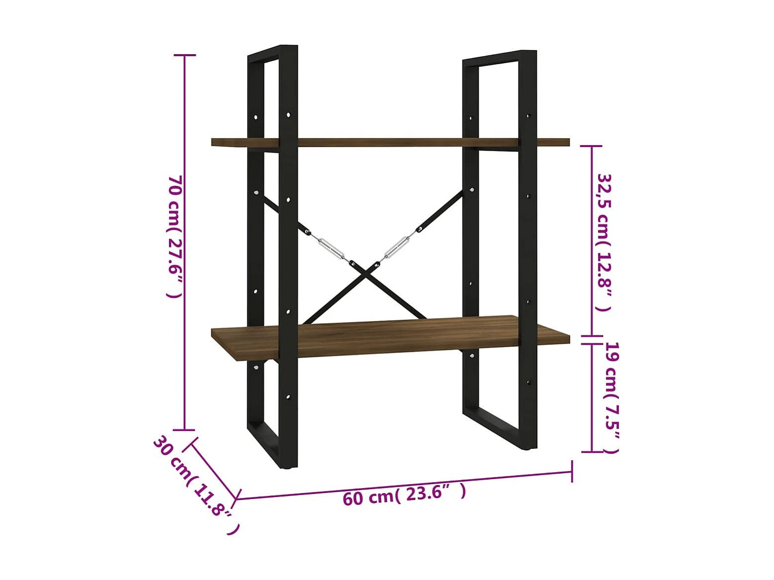 Bowling Green Estantería 2 niveles madera marrón roble 40x30x70 cm