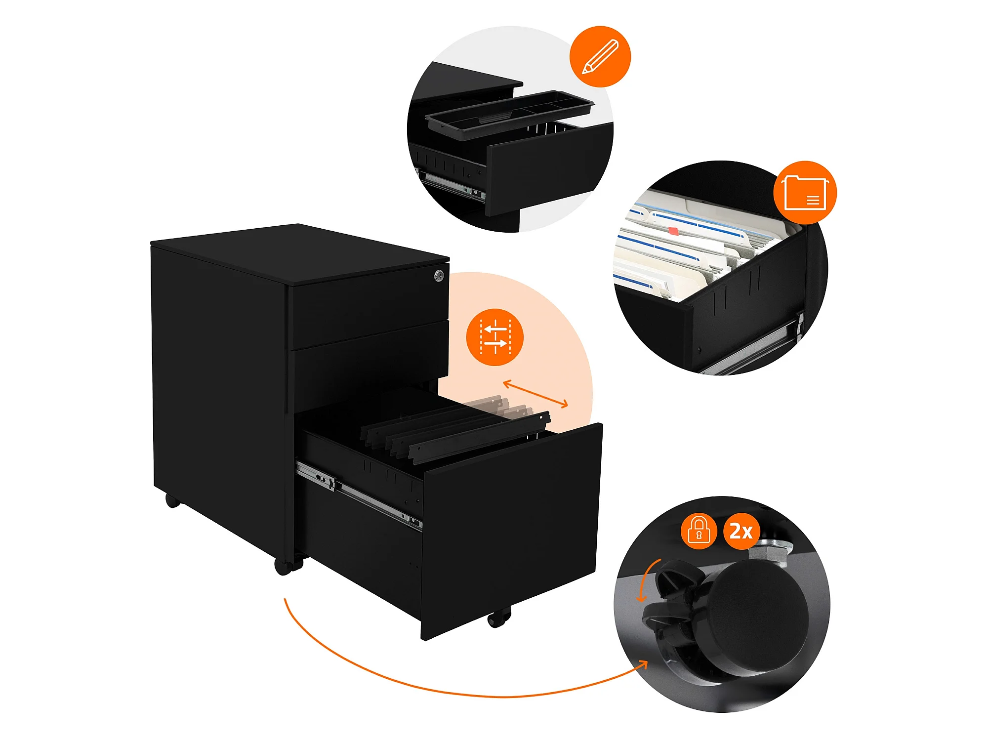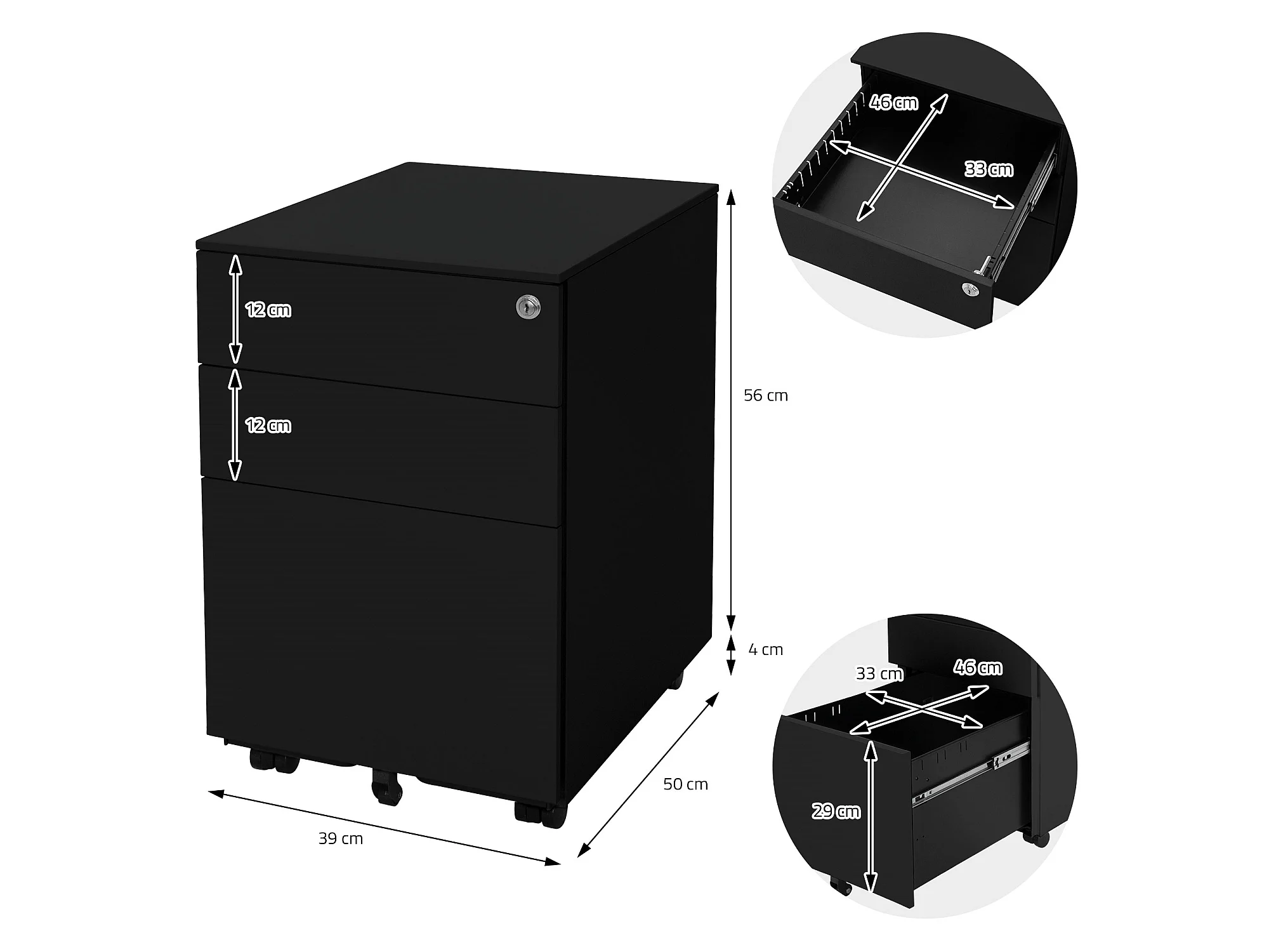 Rollcontainer Bürocontainer Büroschrank Aktenschrank Rollschrank 3 Schubladen