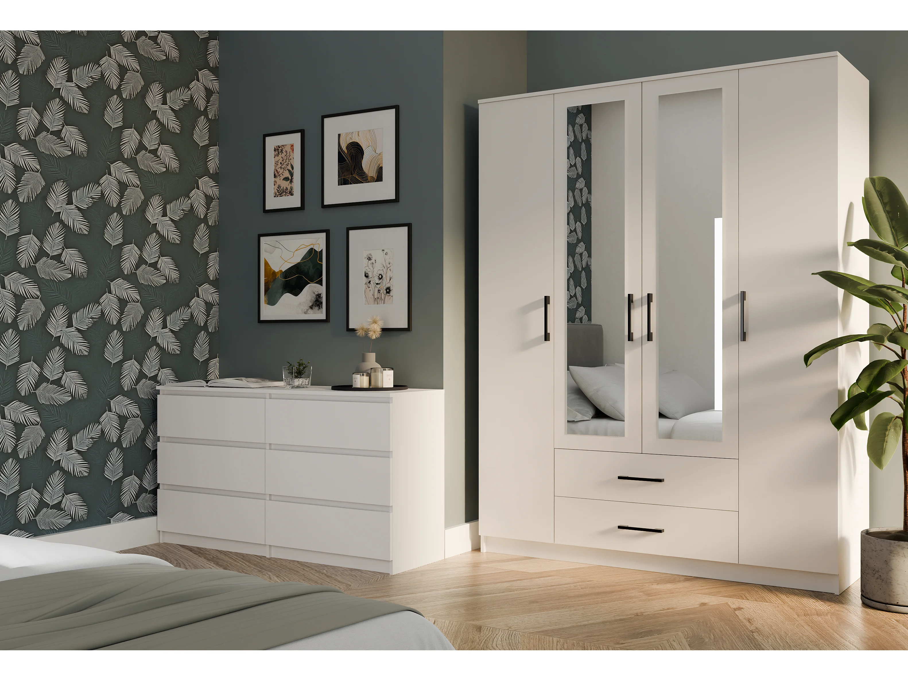 ROMA | Armario grande de oficina /dormitorio | Armario multifuncional | 2 puertas | 2 espejos | 2 cajones | Unidad de almacenamiento | Estantería