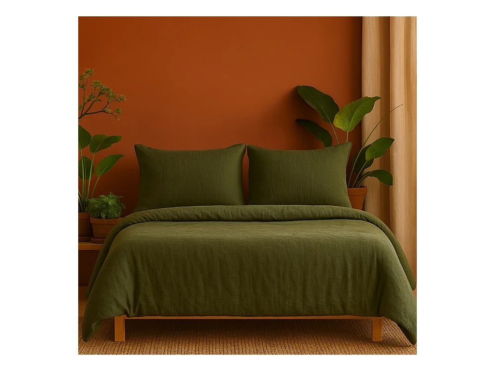 Set funda nórdica de microfibra lavada 260x240 cm BOHEME verde caqui, por Intemporel