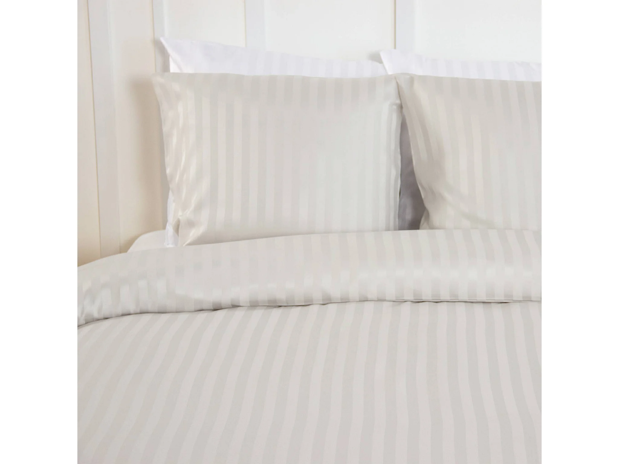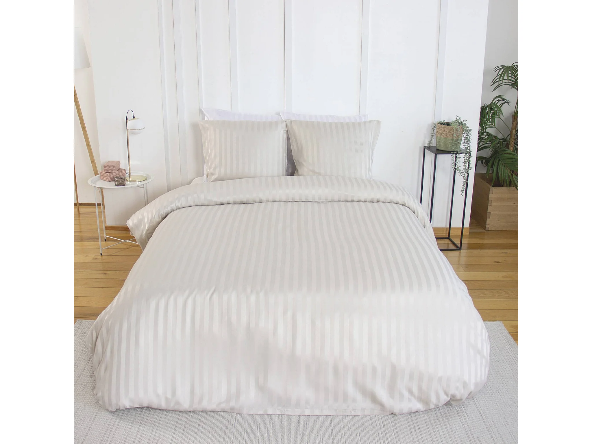 Ropa de cama de poliéster efecto satén con finas rayas beige, 2 plazas