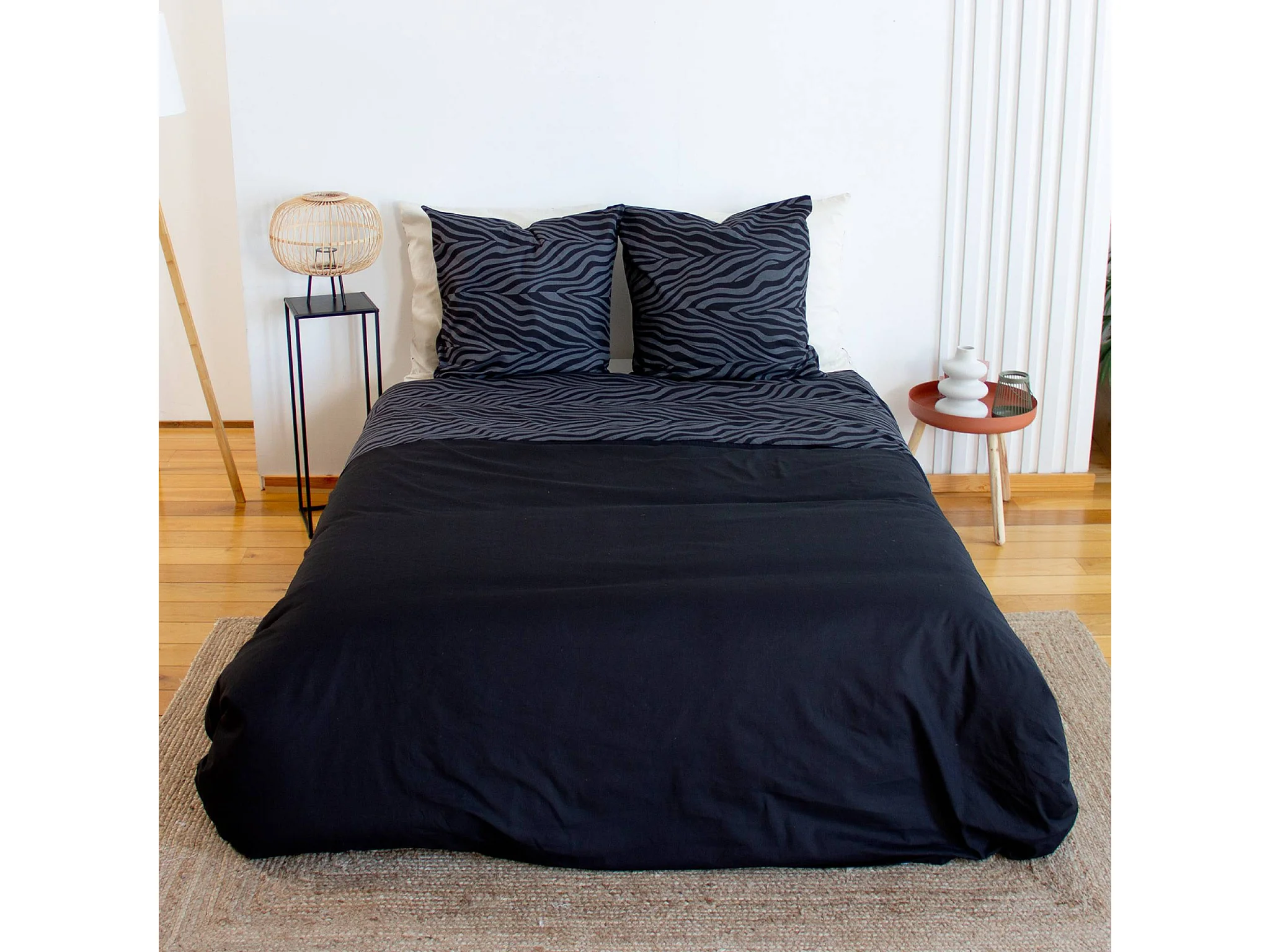 Ropa de cama de poliéster reversible estampado cebra, 2 plazas