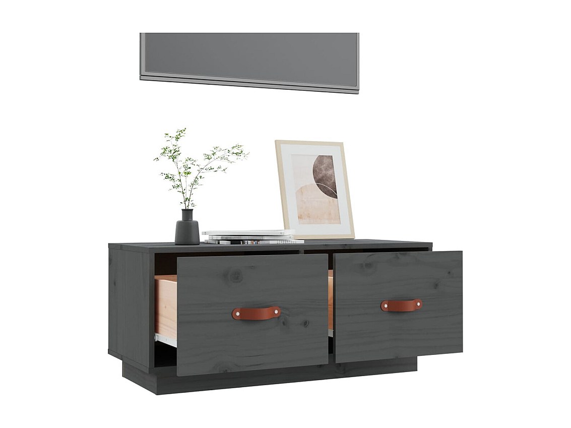 Rorik Mueble de TV de madera maciza de pino gris 80x34x35 cm