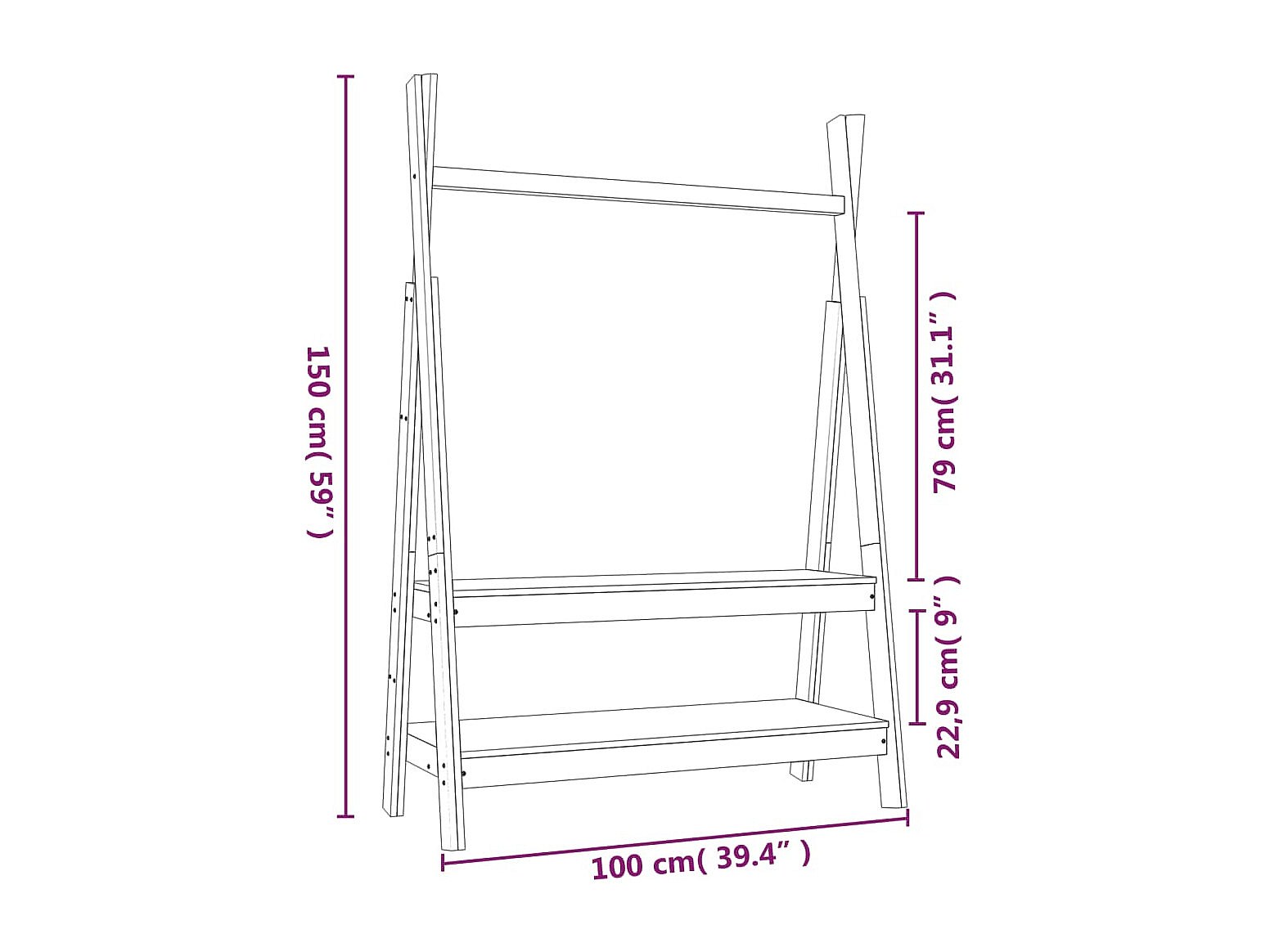 Rostir Perchero de madera maciza de pino gris 100x45,5x150 cm