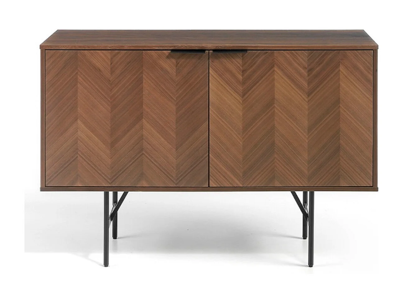 Paoli Aparador moderno de 2 puertas y 1 cajón en nogal con patas de acero negro 180 cm