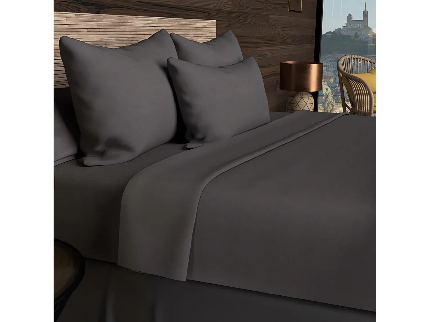 Sábana bajera ajustable 160x200 cm en algodón de 57 hilos SOLEIL D'OCRE antracita