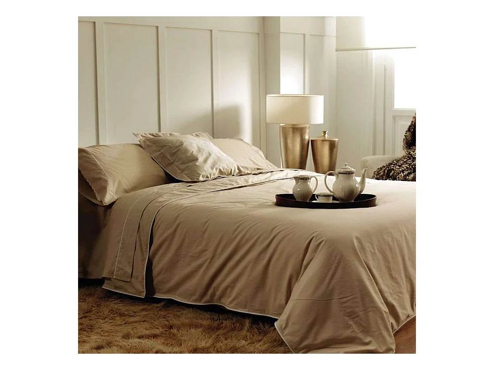Juego de sábanas ORIO BEIGE 100% algodón orgánico beige 160x260 Cama 90