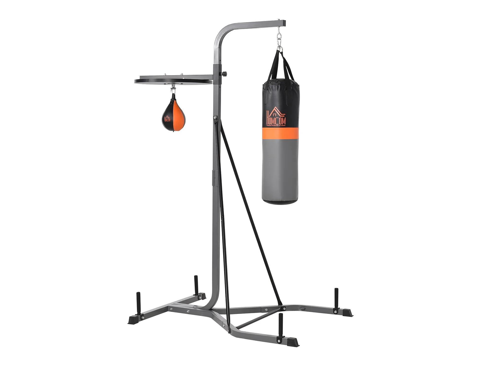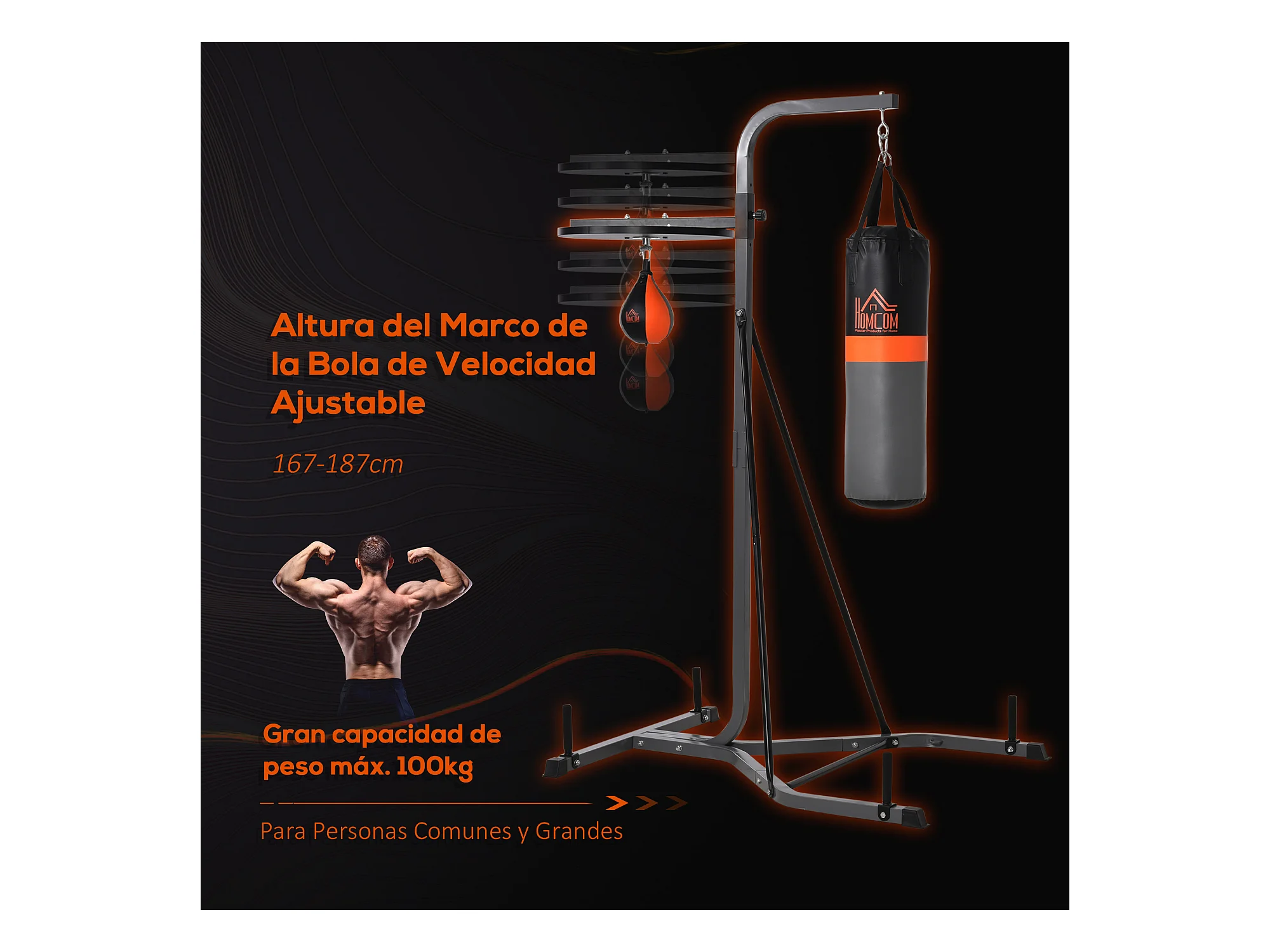 Saco de boxeo colgante con soporte negro y gris 115x157x221 cm HOMCOM