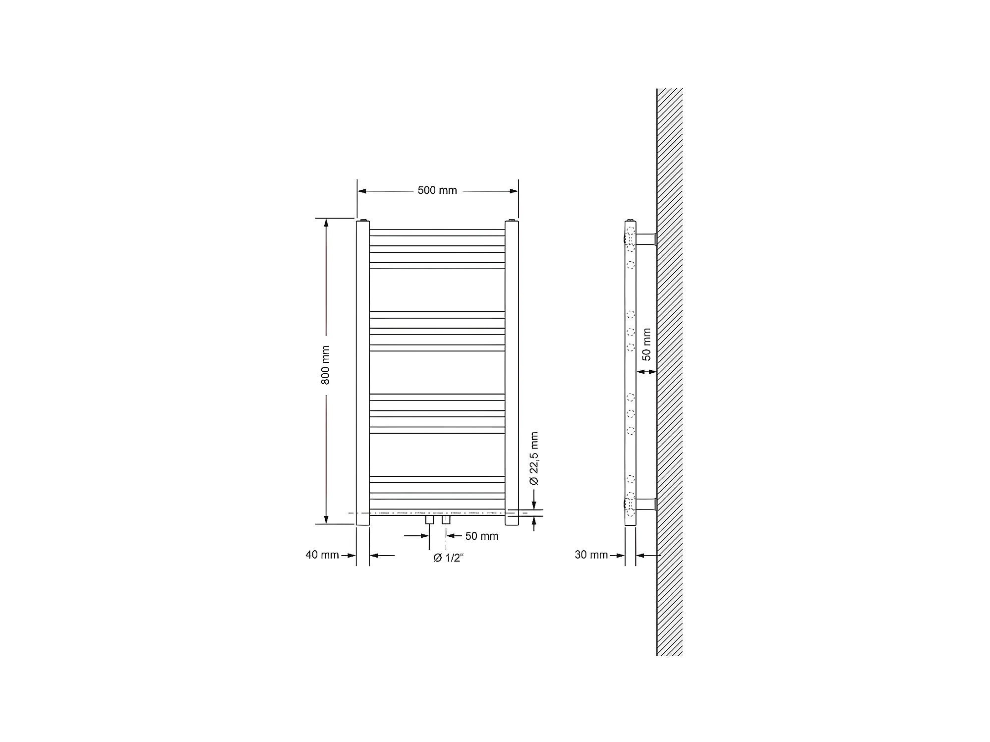 Sahara radiador de baño blanco radiador conexión lateral 50x80cm