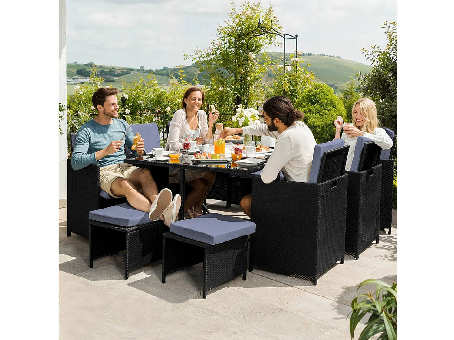 Salón de jardín 10 plazas de resina trenzada negra y gris FLORIDA