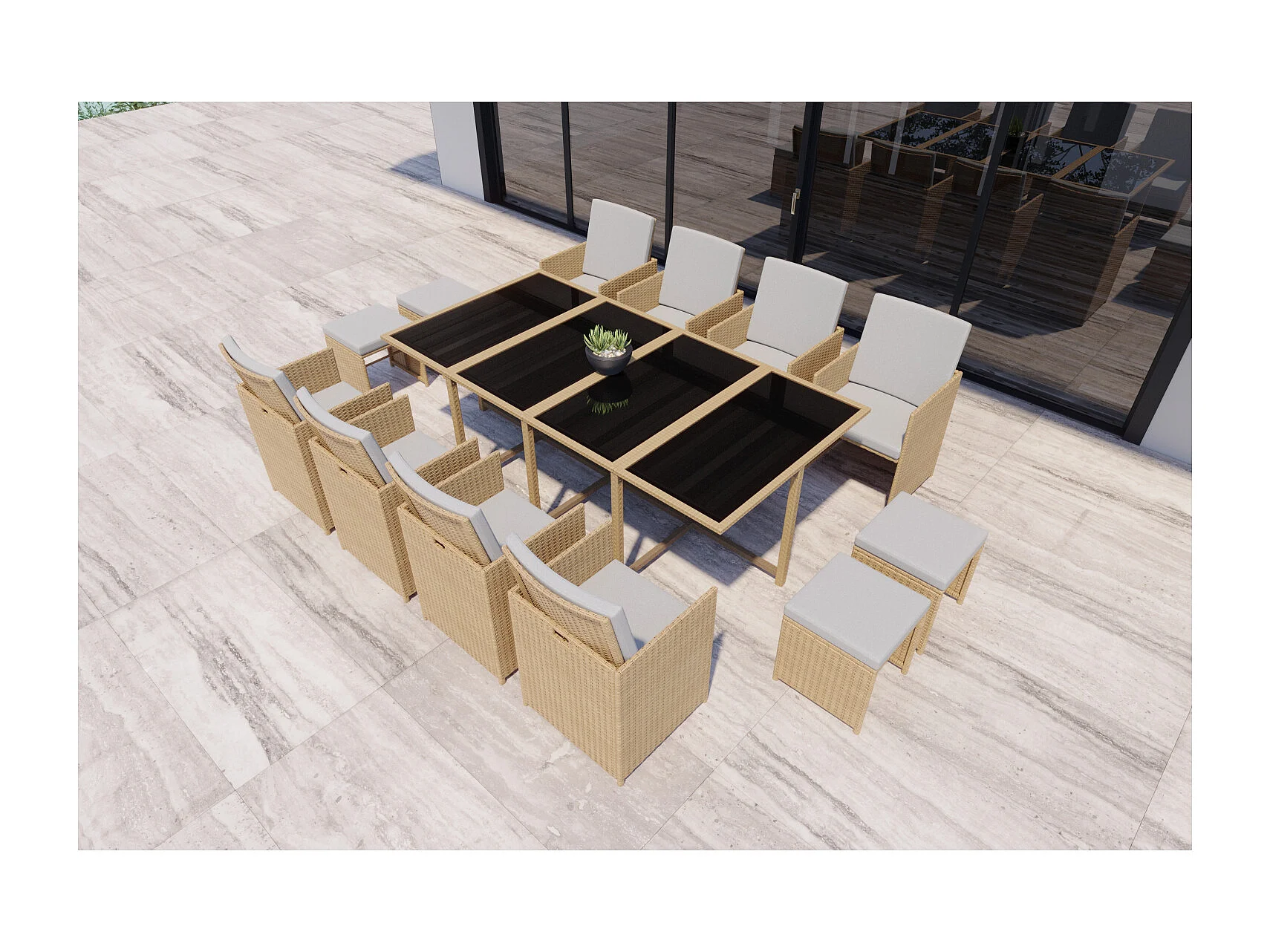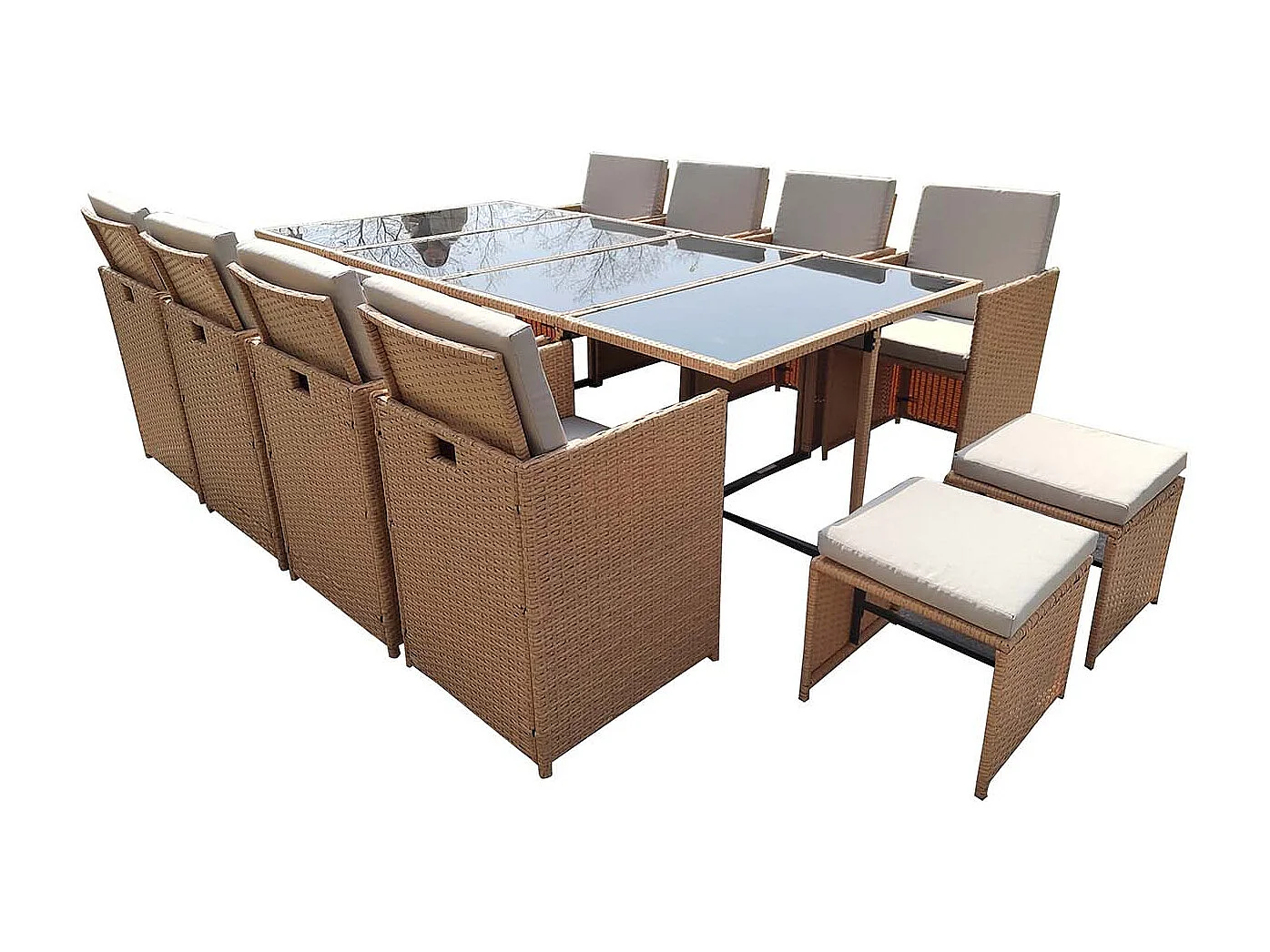 Salón de jardín 12 plazas de resina trenzada natural FLORIDA
