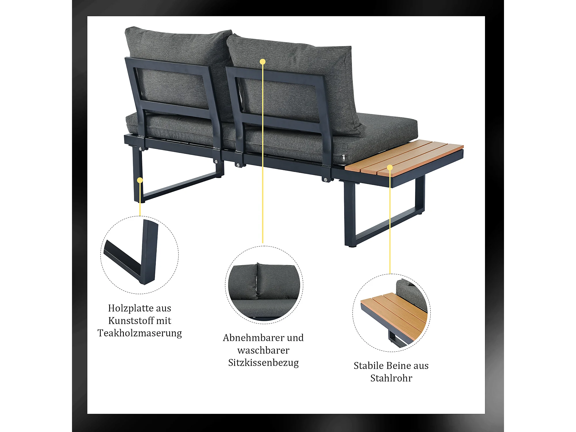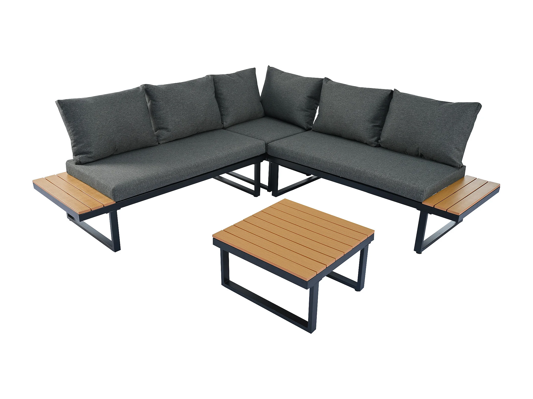 Salón de jardín - 4 plazas - en acero galvanizado - sofá de esquina - 1 mesa de madera envejecida - Gris