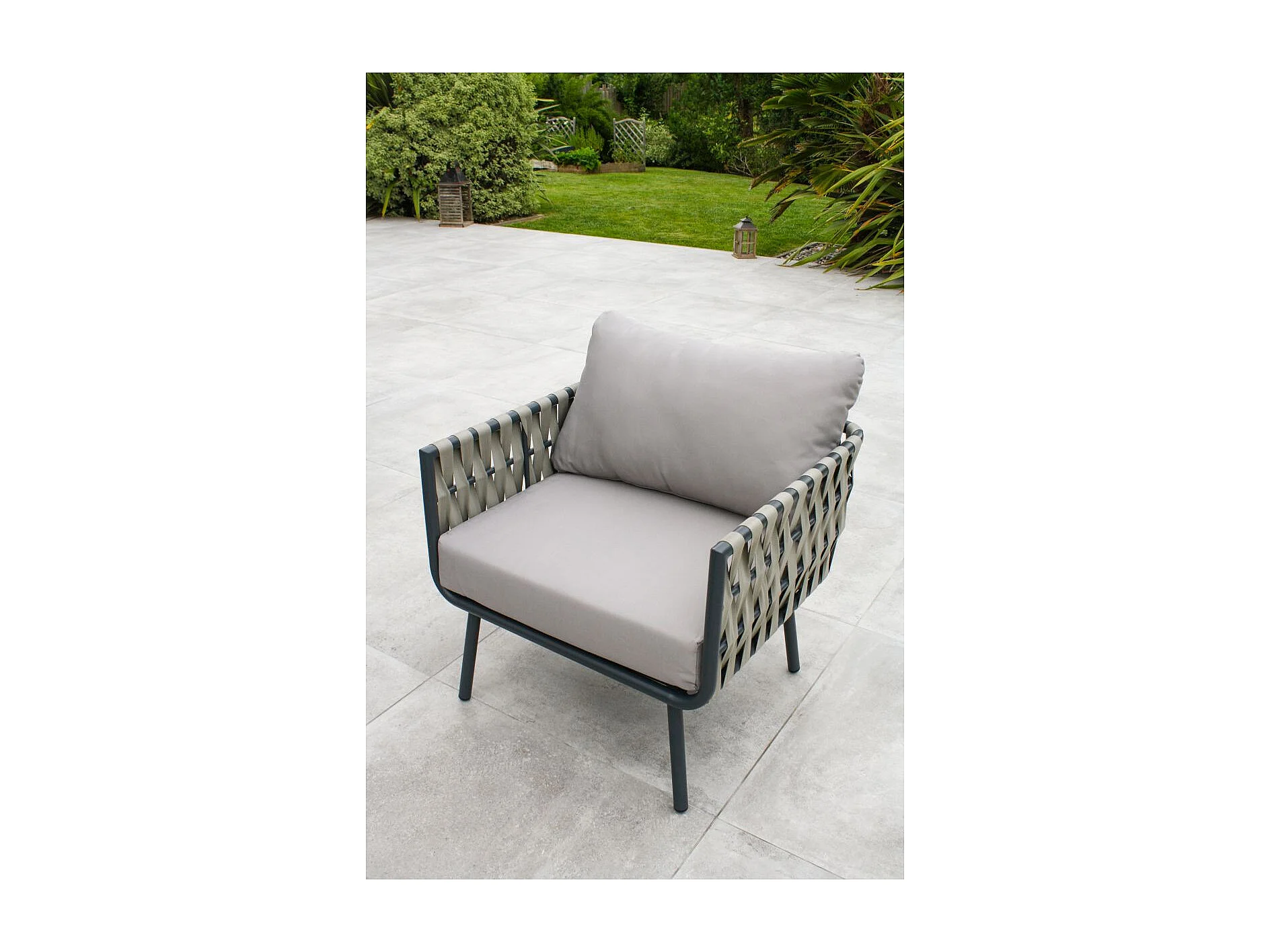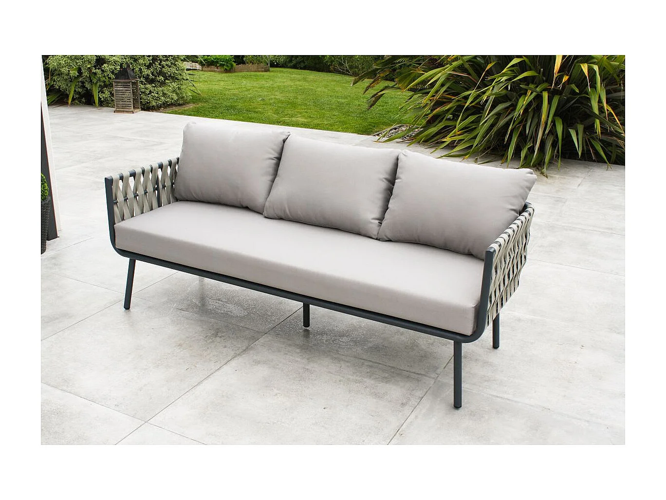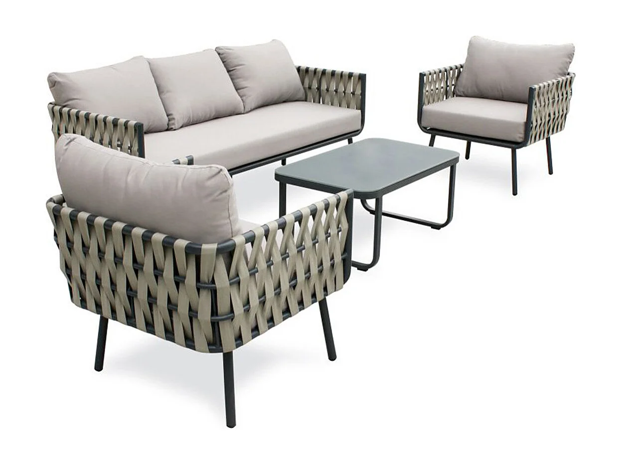 Salón de jardín 5 plazas con tiras de tela trenzadas