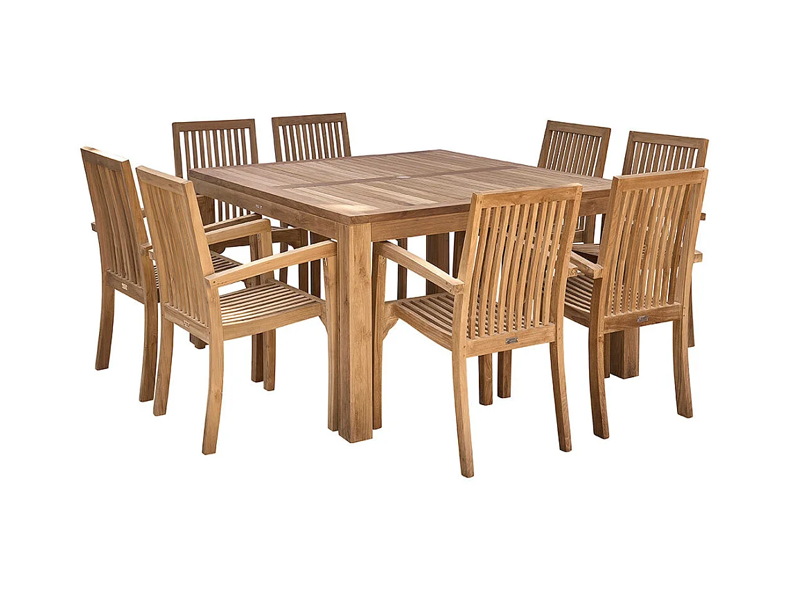 Salón de jardín cuadrado de madera de teca para 8 pers.