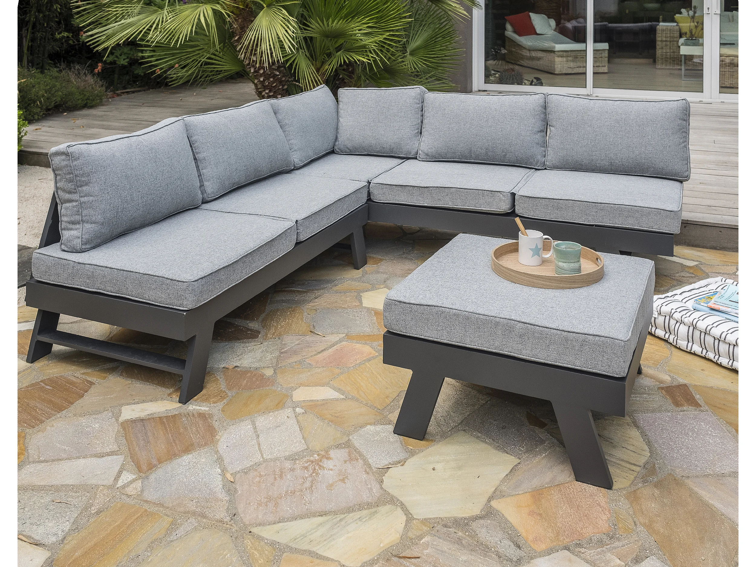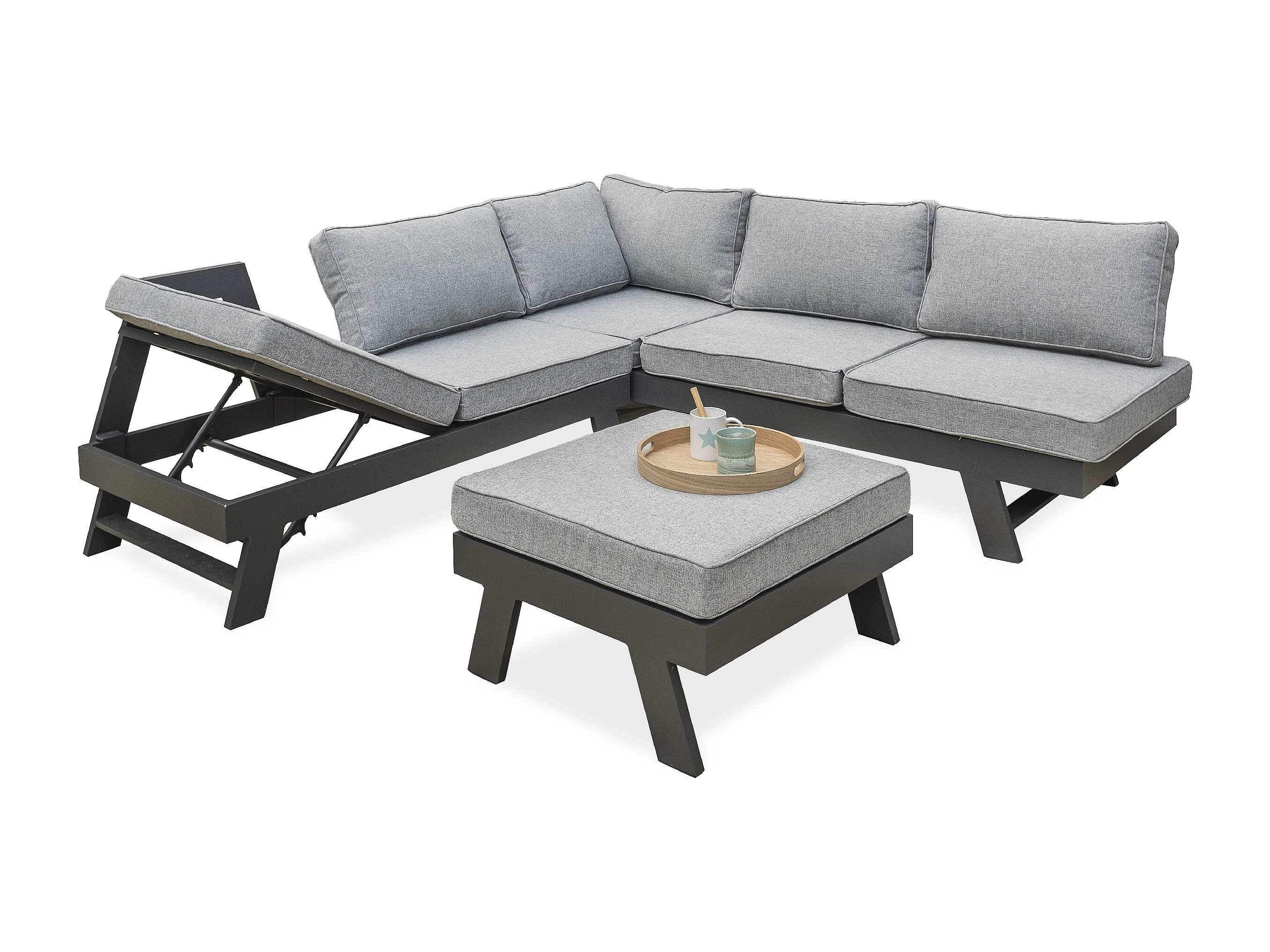 Salón de jardín de esquina 5/6 plazas de aluminio