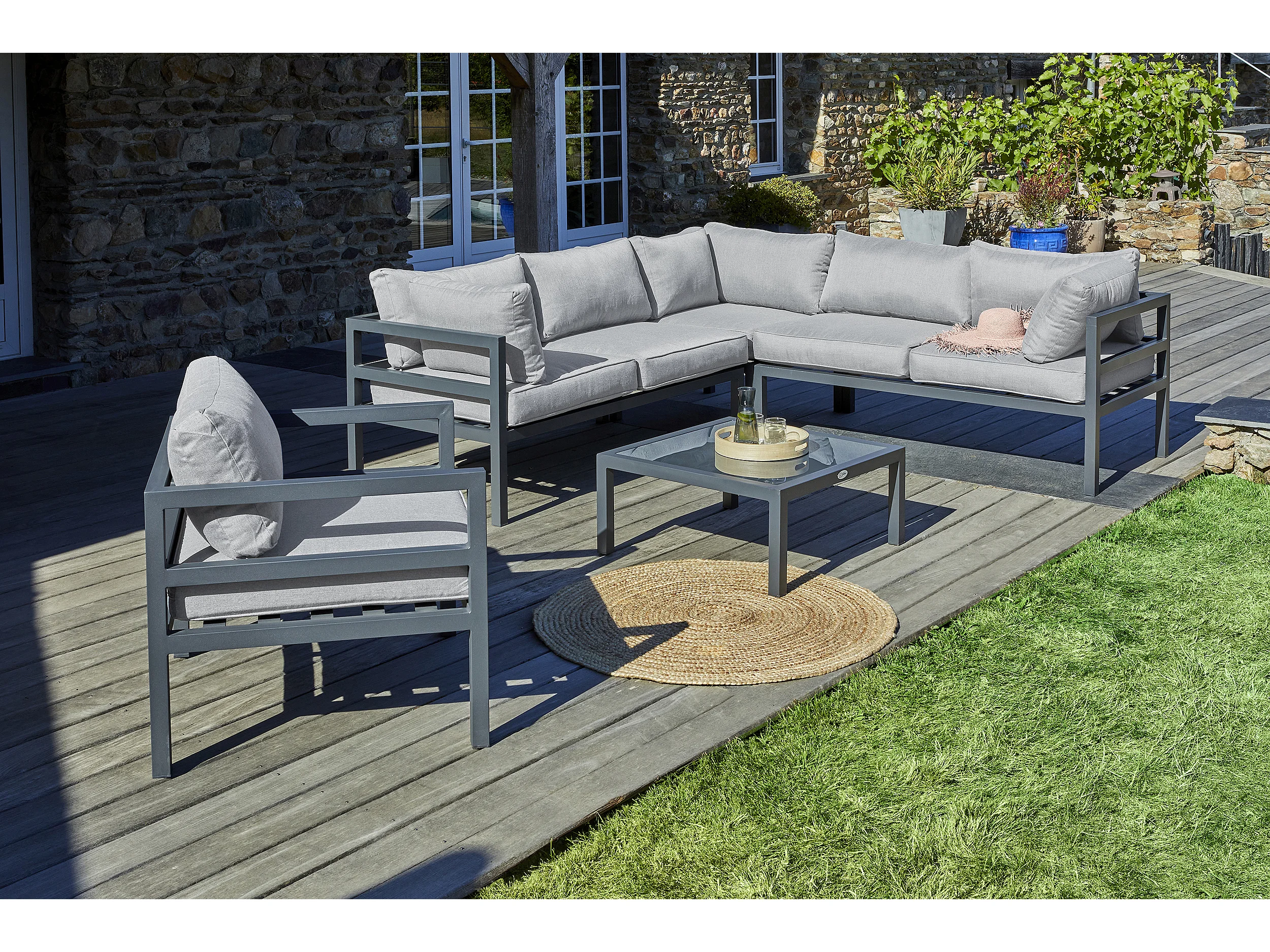 Salón de jardín de esquina 6 plazas de aluminio