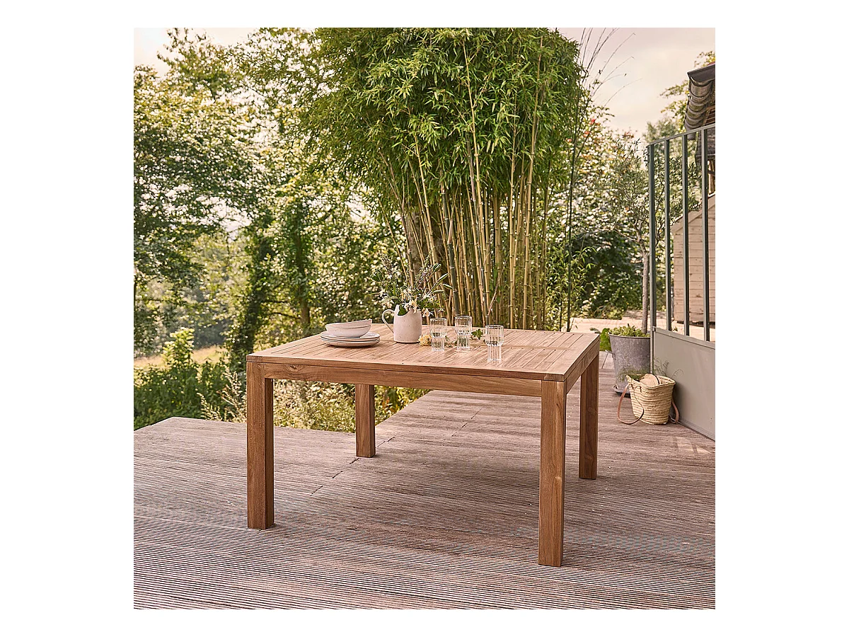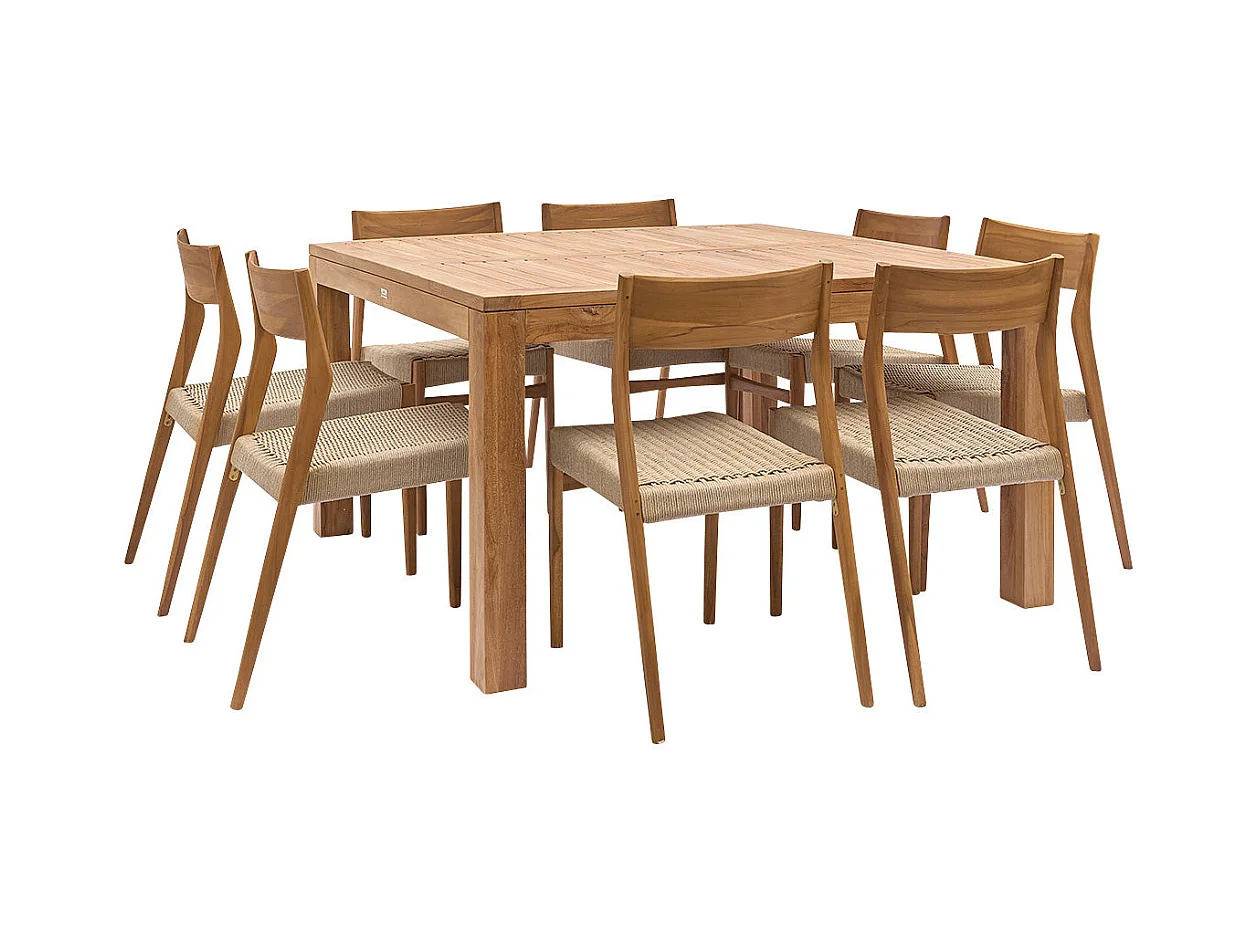 Salón de jardín cuadrado de madera de teca para 8 pers.