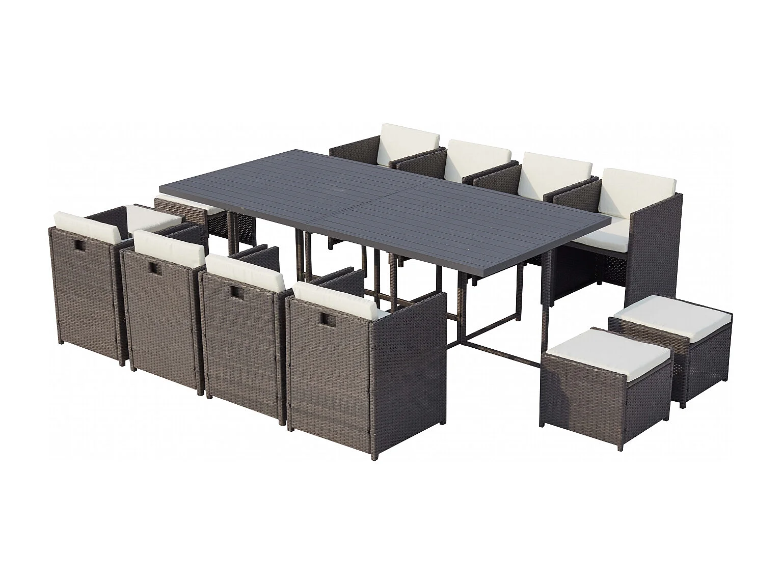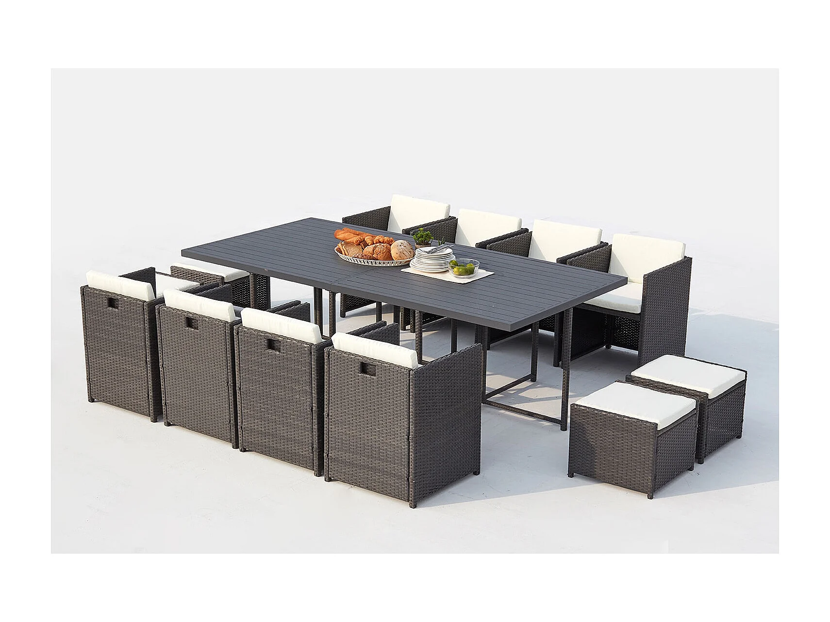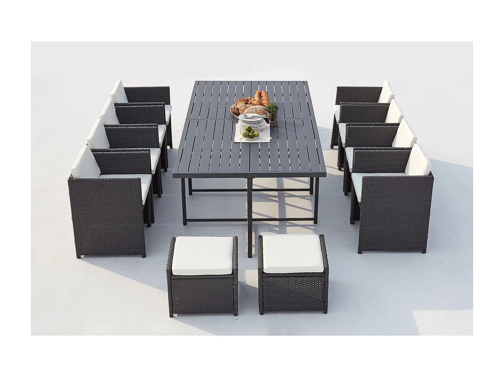 Salón de jardín encastrable 12 plazas resina trenzada y alu gris/blanco SUNSET