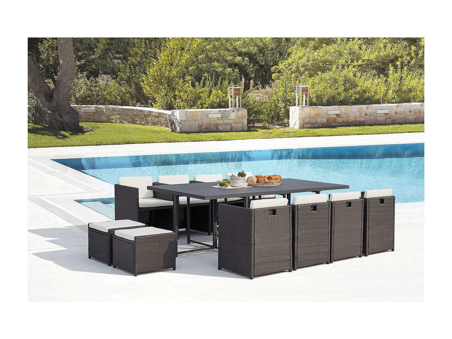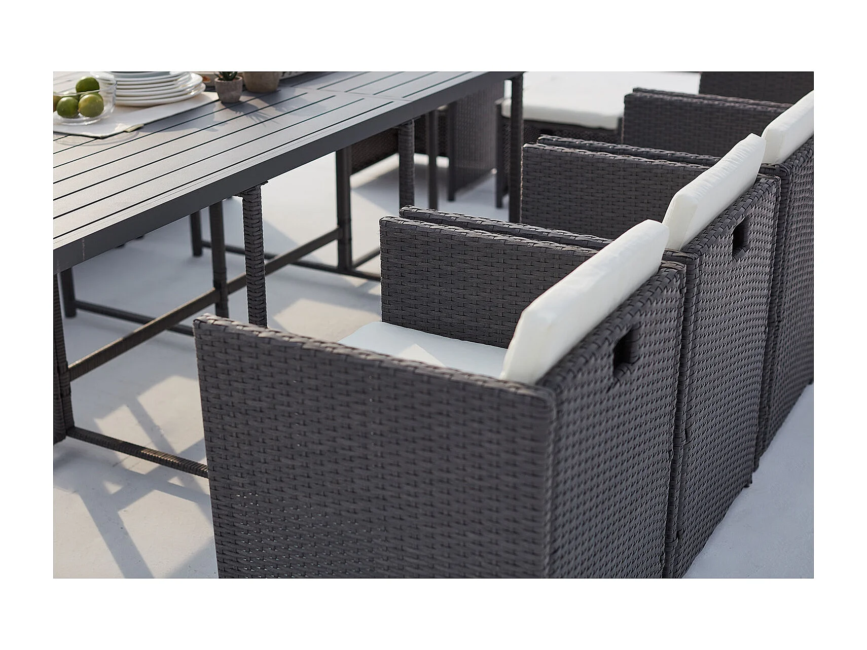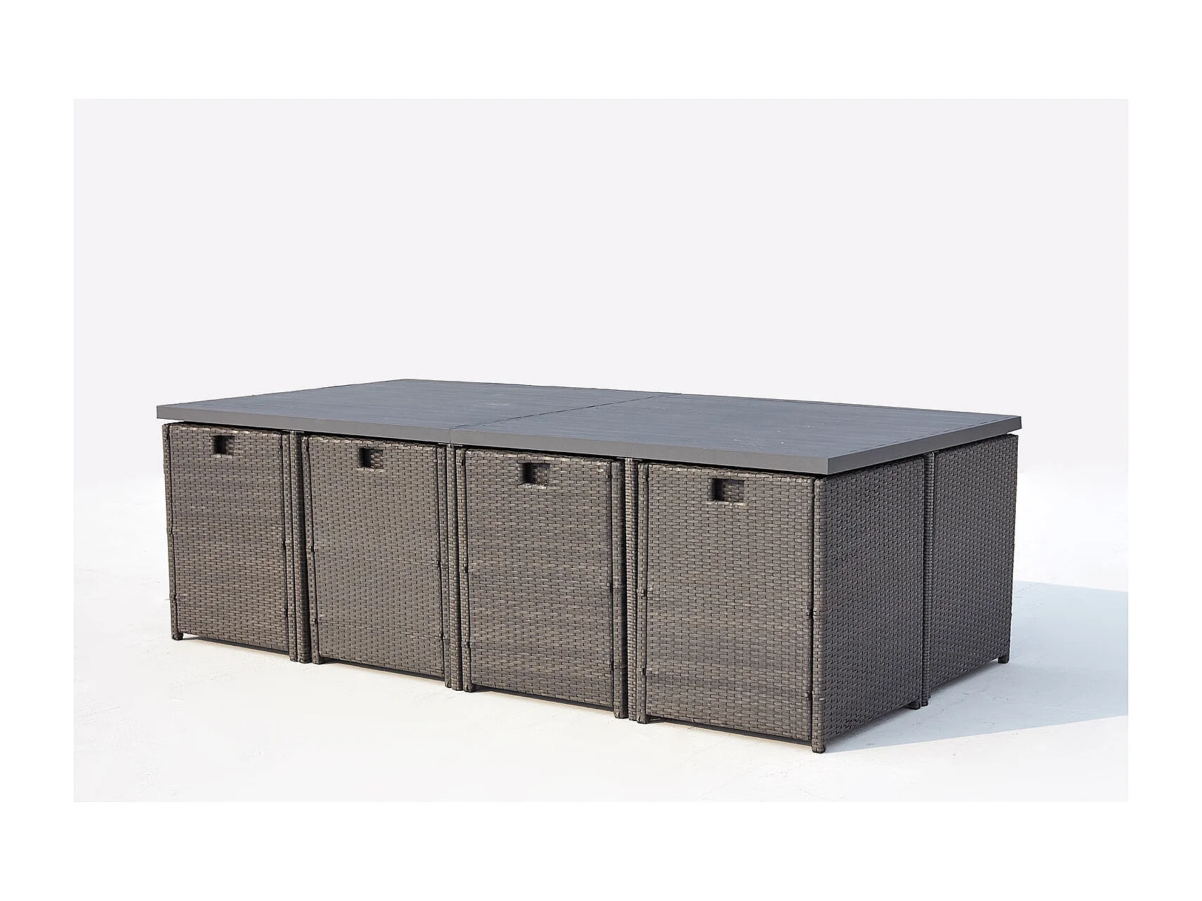 Salón de jardín encastrable 12 plazas resina trenzada y alu gris/blanco SUNSET