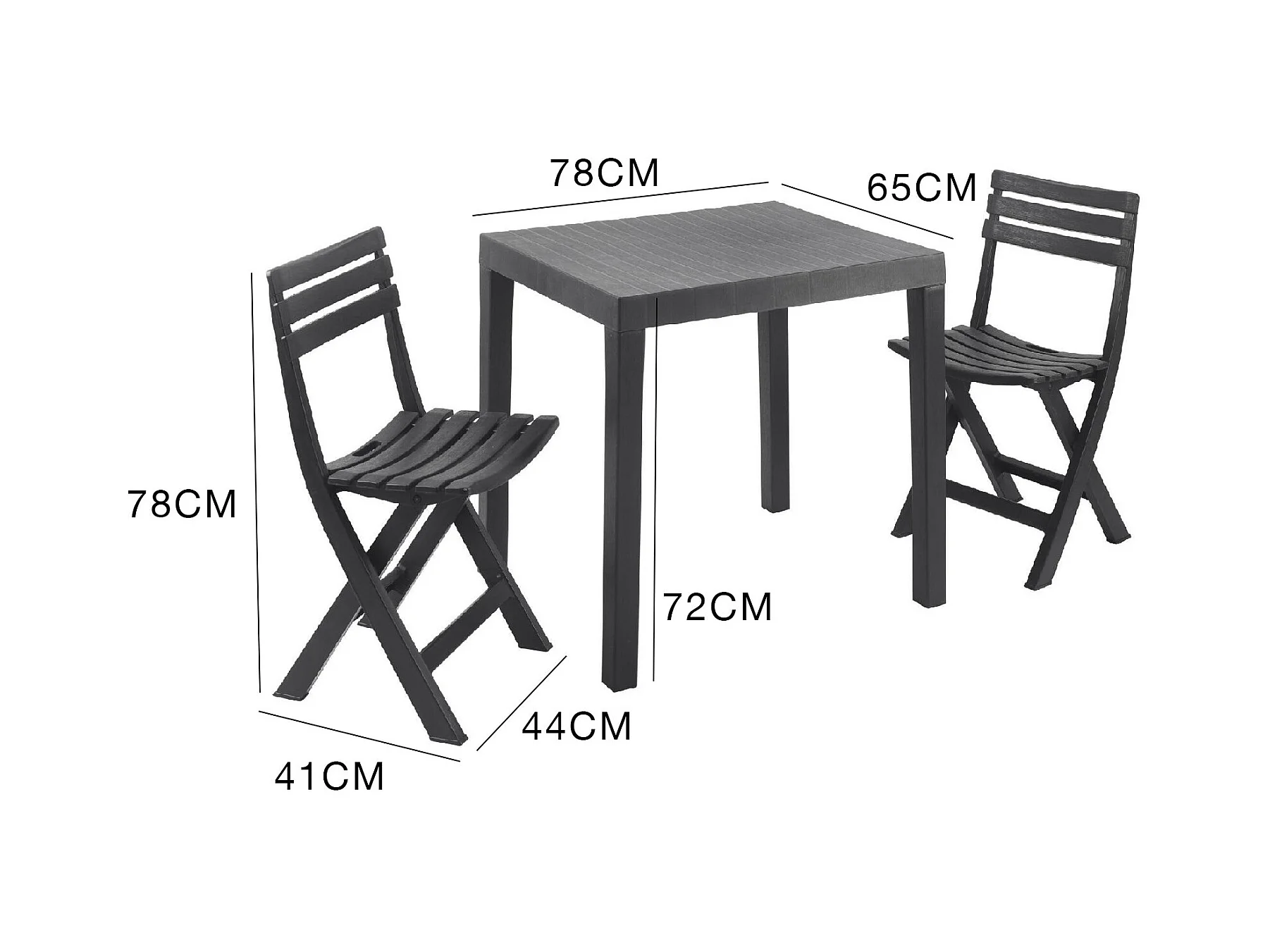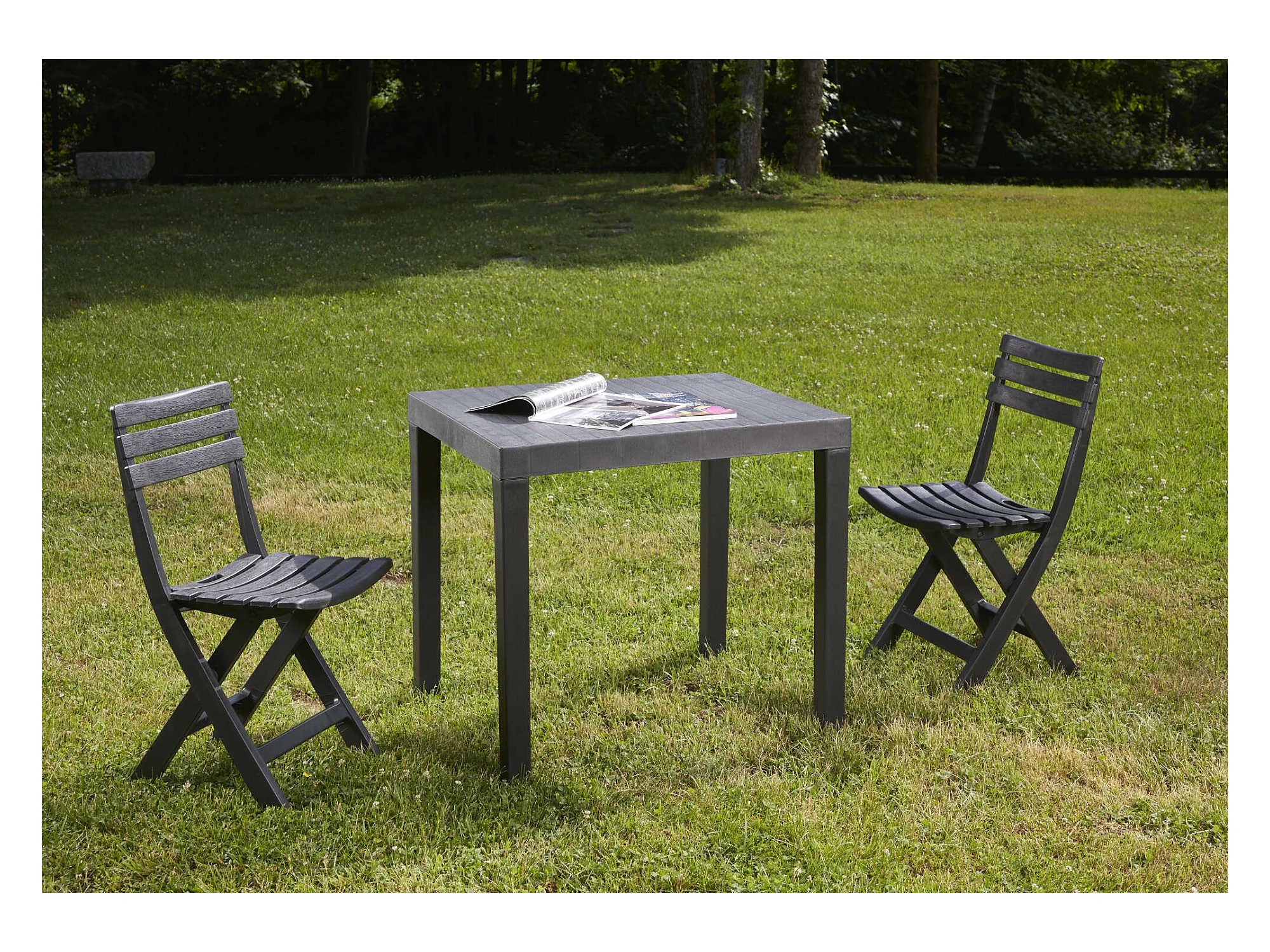 Salón de Jardín Dlibutt, Conjunto de jardín con 1 mesa rectangular y 2 sillas plegables, Pic Nic conjunto interior y exterior, 100% Made in Italy, Antracita