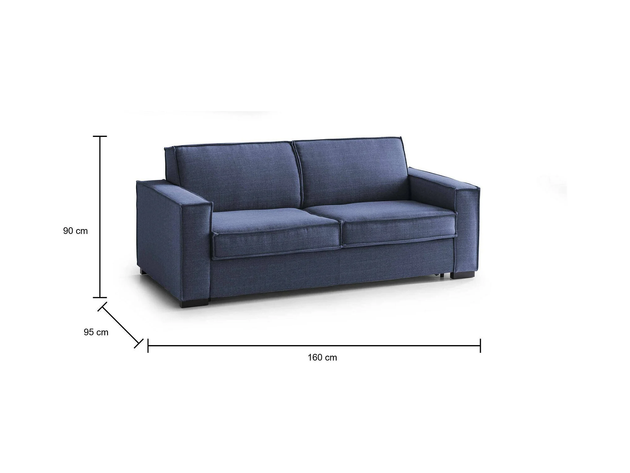 Samantha Sofá Cama, Sofá de 2 plazas, 100% Made in Italy, Sofá de salón con apertura giratoria, de tejido acolchado, con apoyabrazos finos, 160x95h90 cm, Azul