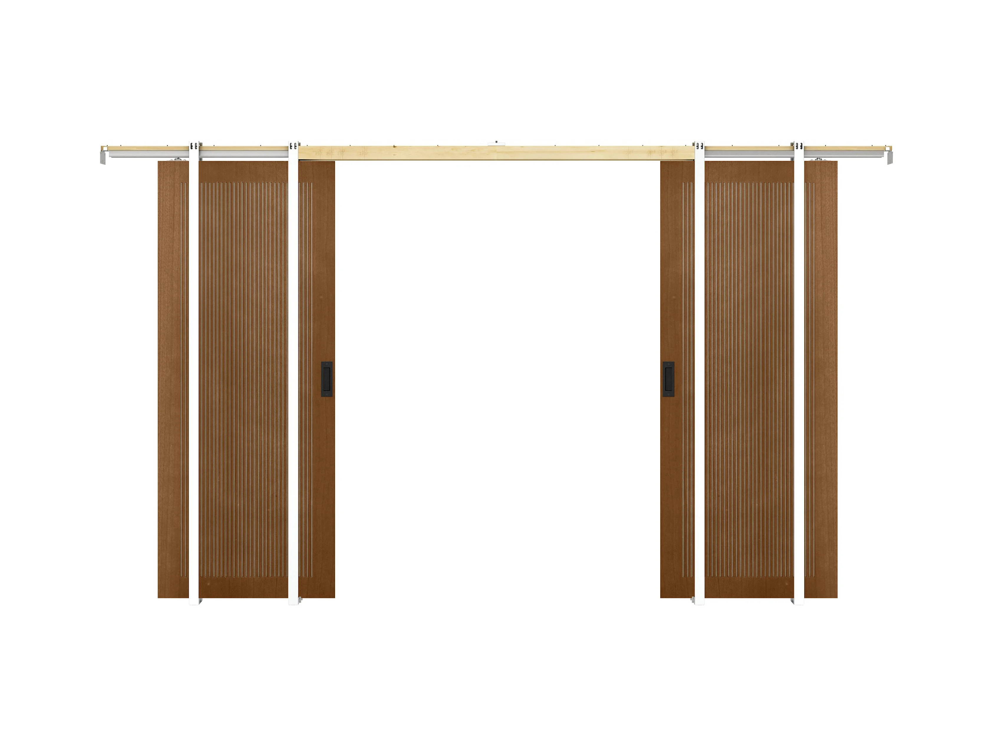 Puerta corredera doble empotrable en MDF y madera natural oscura - 2 x Alt. 205 x L63 cm - SANDORA