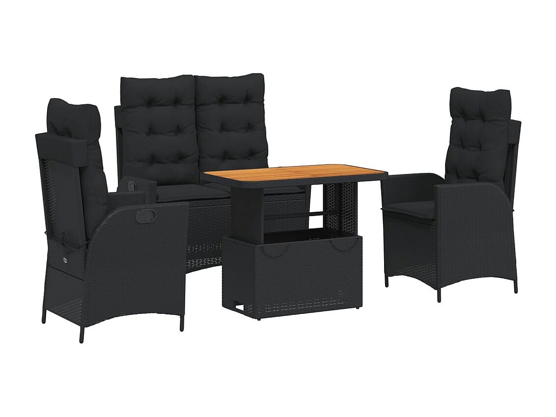 Marius Juego comedor jardín 4 piezas con cojines ratán sintético negro