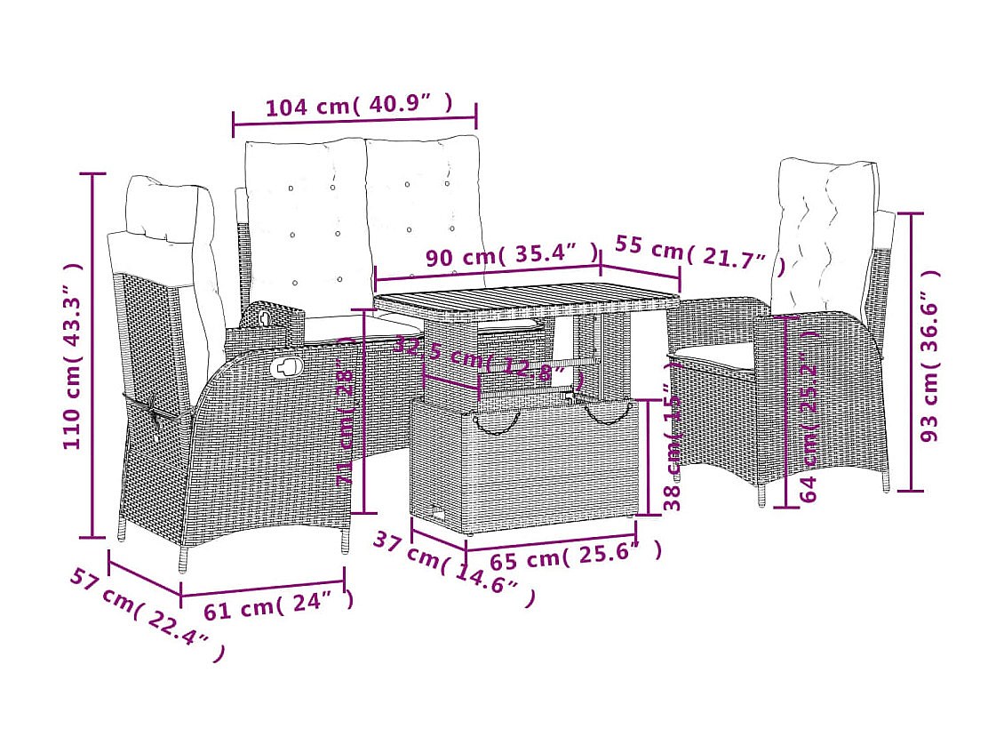 Isyra Juego comedor jardín 4 piezas con cojines ratán sintético negro