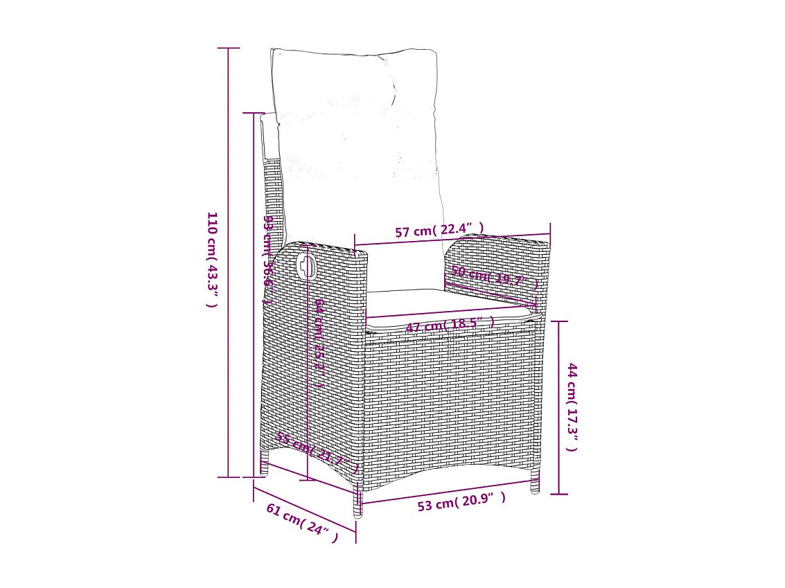 Toby Dean Set comedor de jardín 3 pzas con cojines ratán sintético negro
