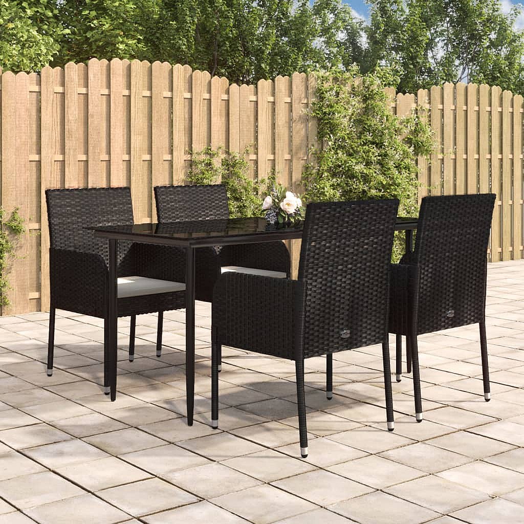 Vernon Juego de comedor de jardín 5 piezas con cojines negro