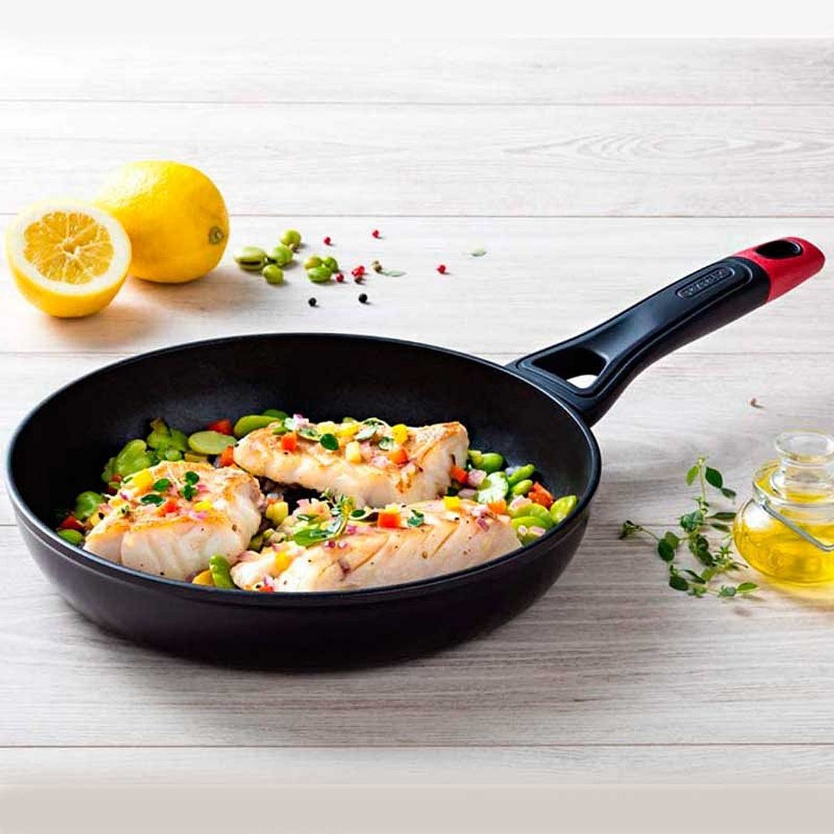 Sartén honda Óptima + Pyrex aluminio forjado negro Ø26 cm