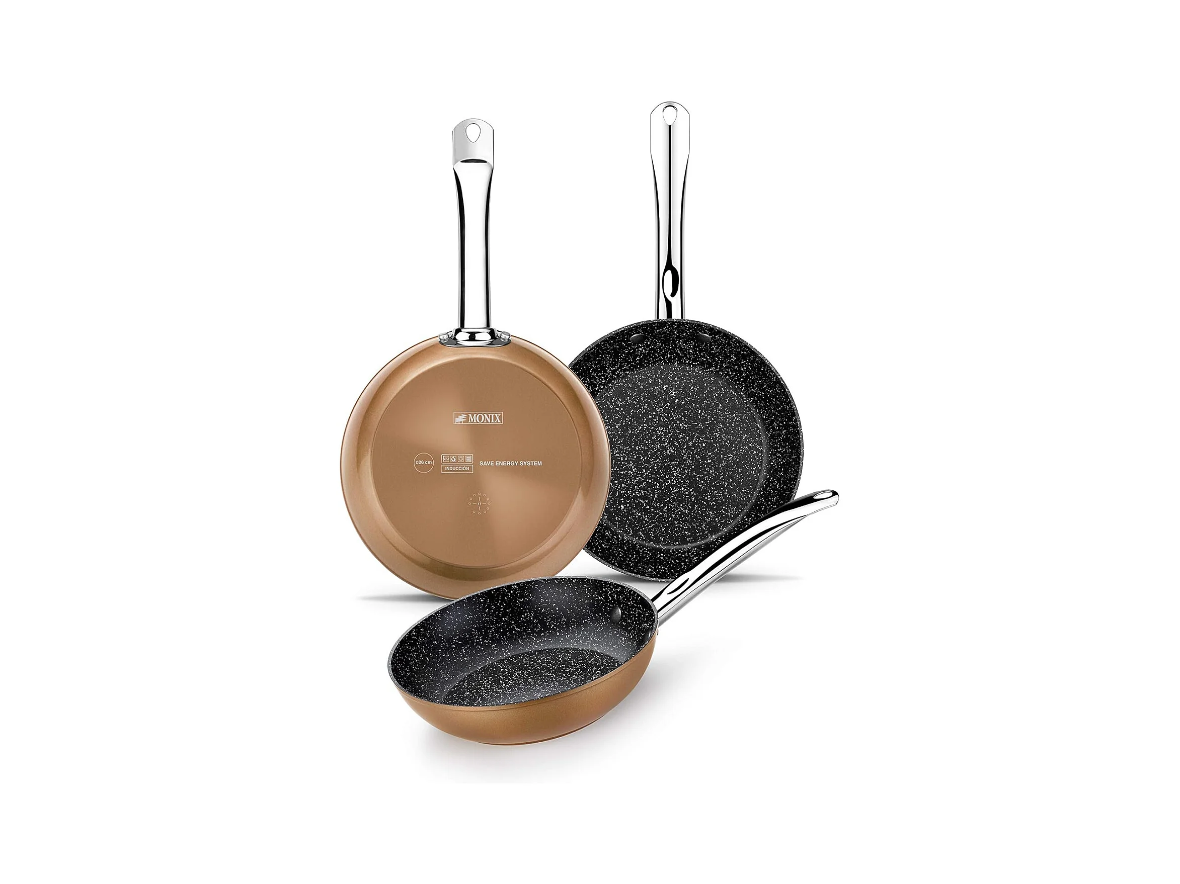 Set de 3 sartenes ARTHUR MARTIN con revestimiento cerámico y mango desmontable, compatibles con todas las fuentes de calor incluyendo la inducción