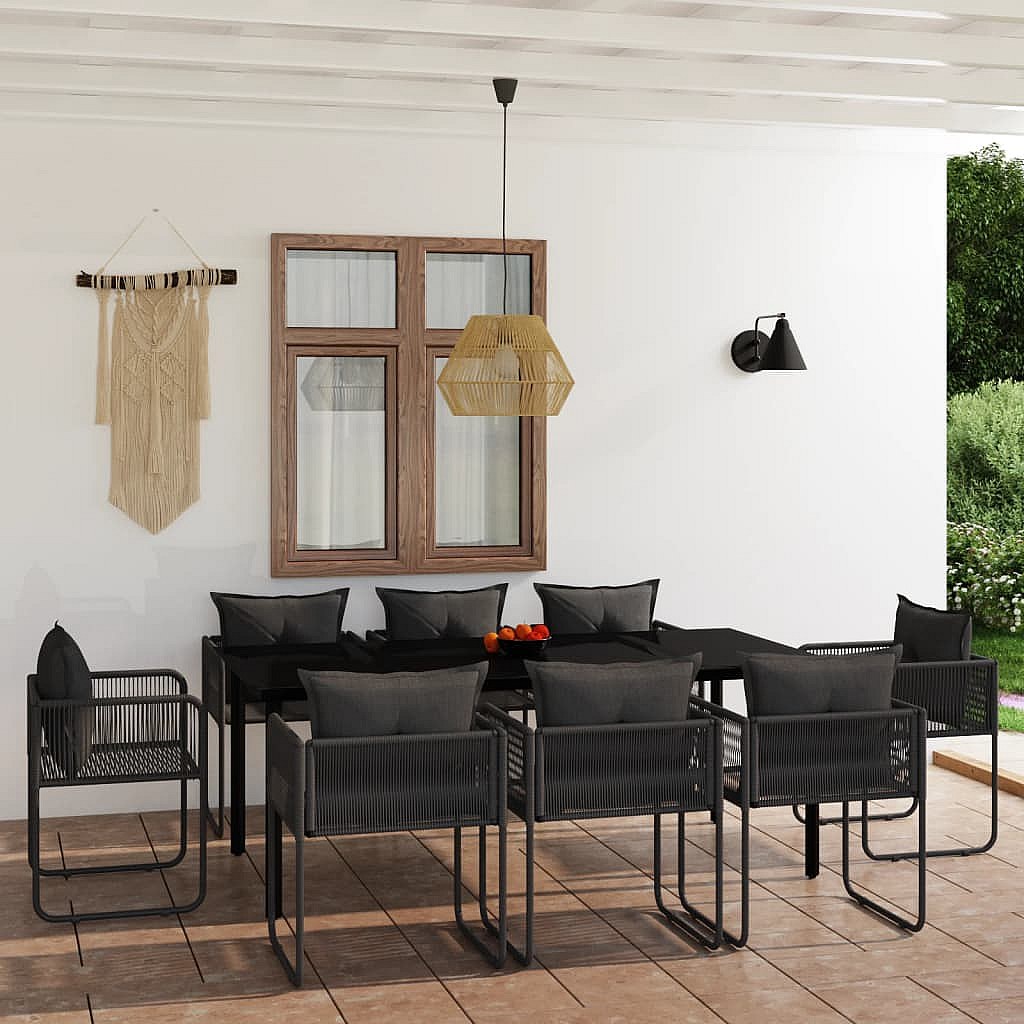 Sondrio Juego de comedor para jardín 9 piezas negro