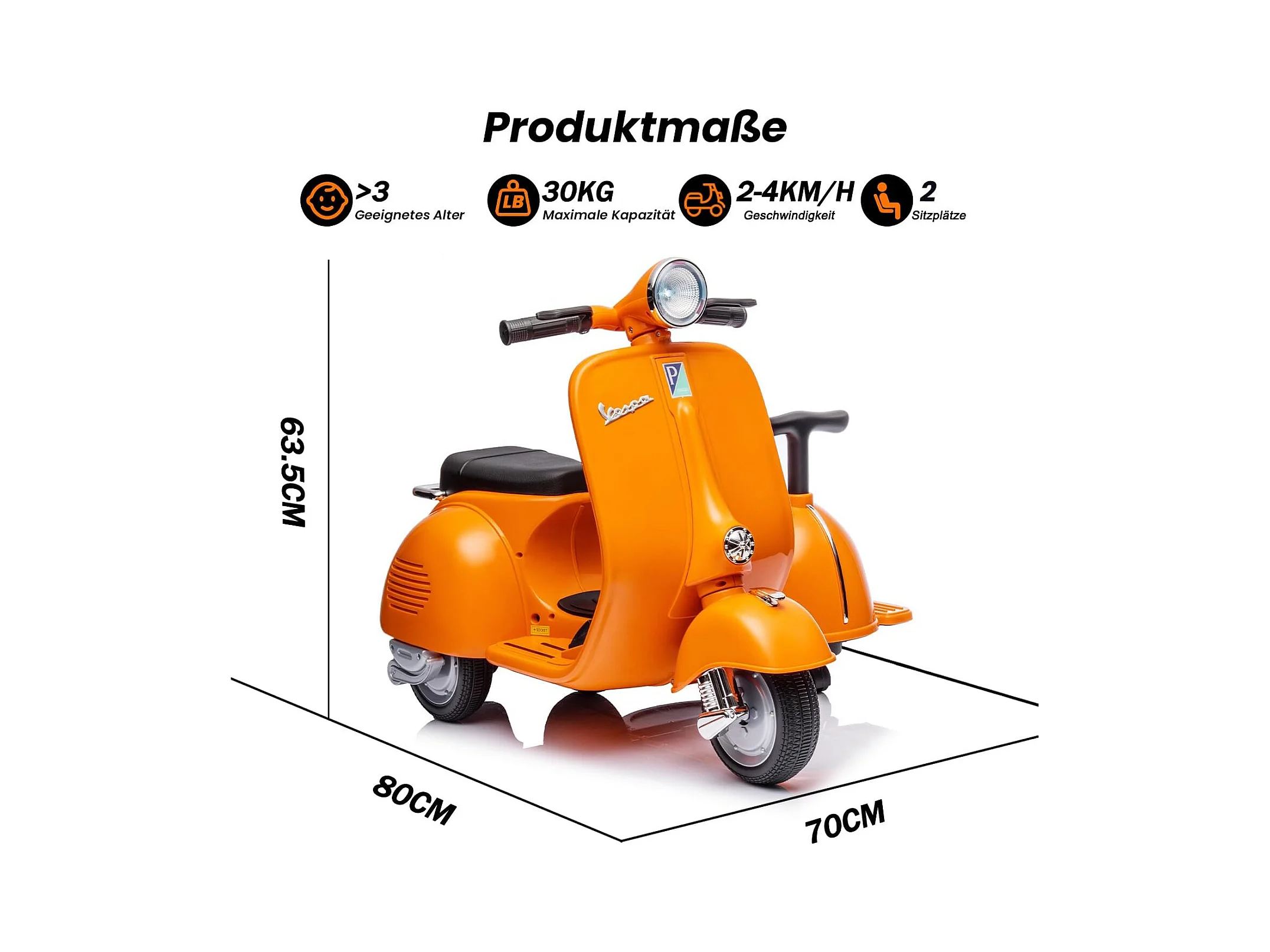 Scooter eléctrico Vespa 6v para niños, 2 plazas, en color naranja
