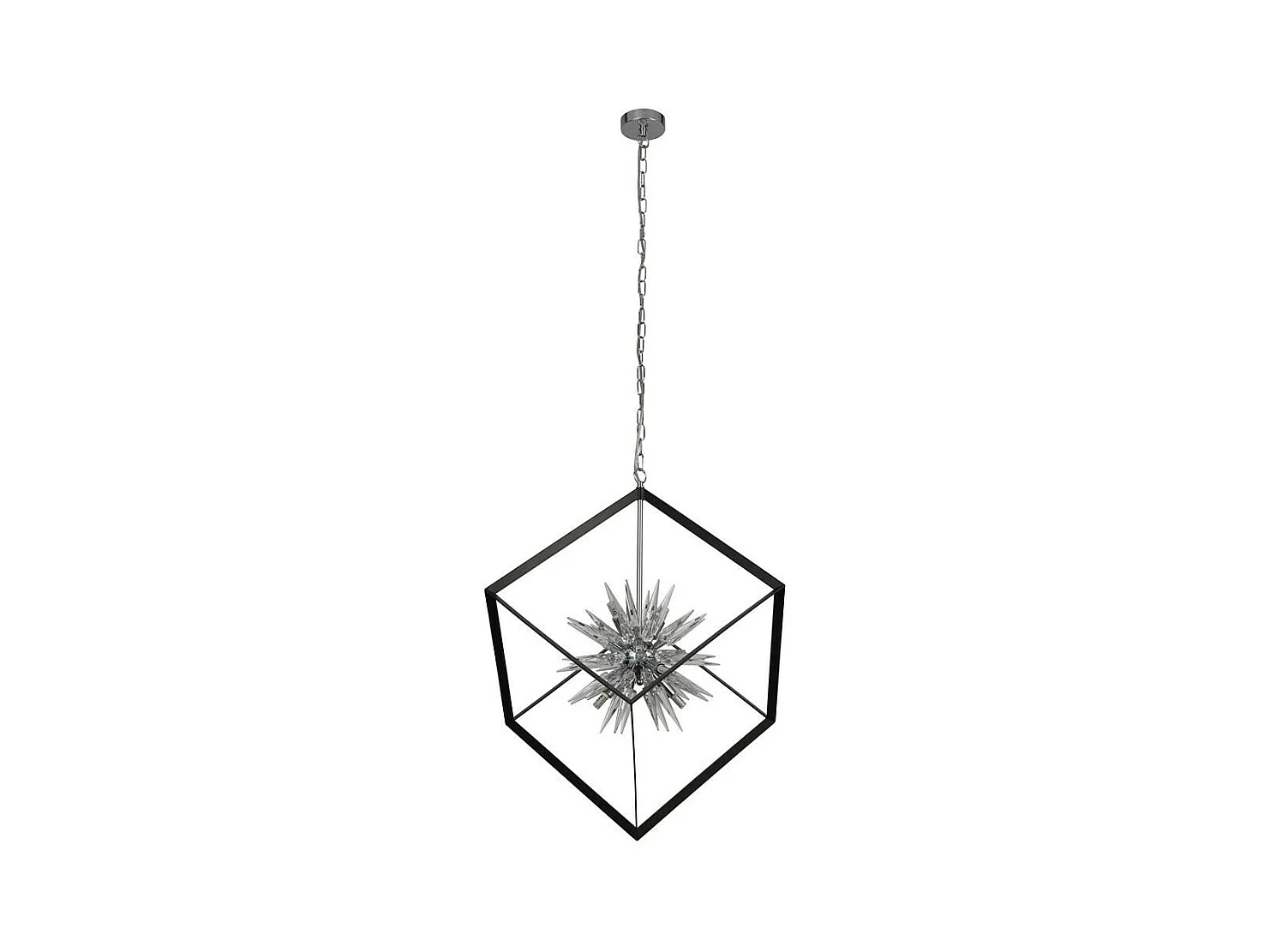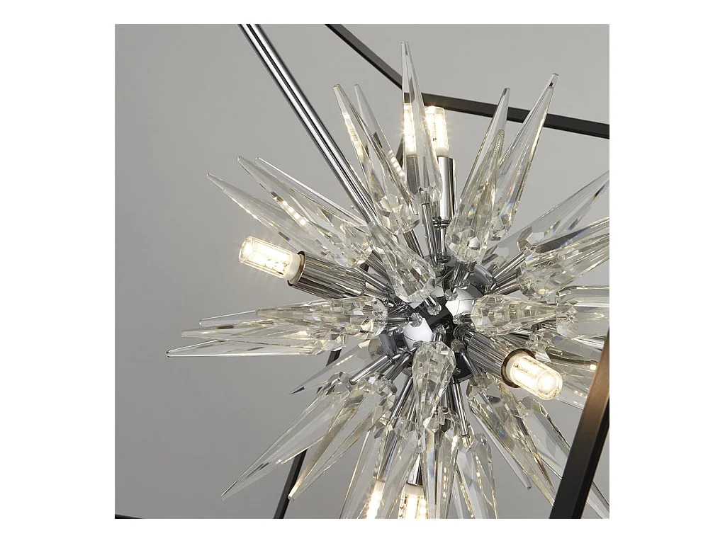 Searchlight Stellar6 Light Spike Ball Pendel, Matt svart ram, Kristallglas