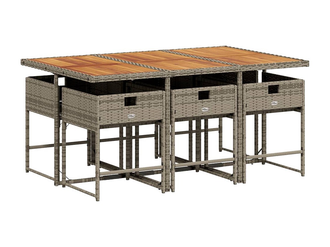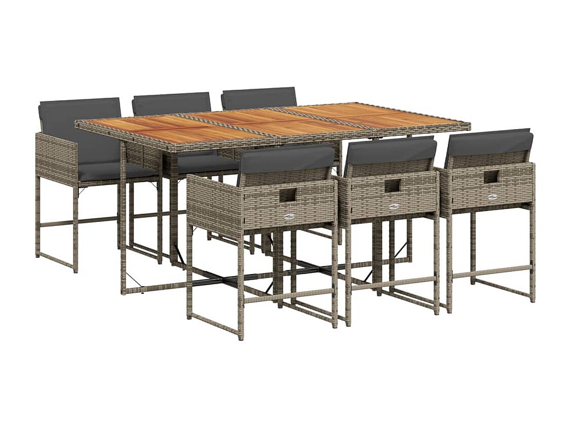 Sener Set comedor jardín 7 pzas y cojines ratán sintético gris