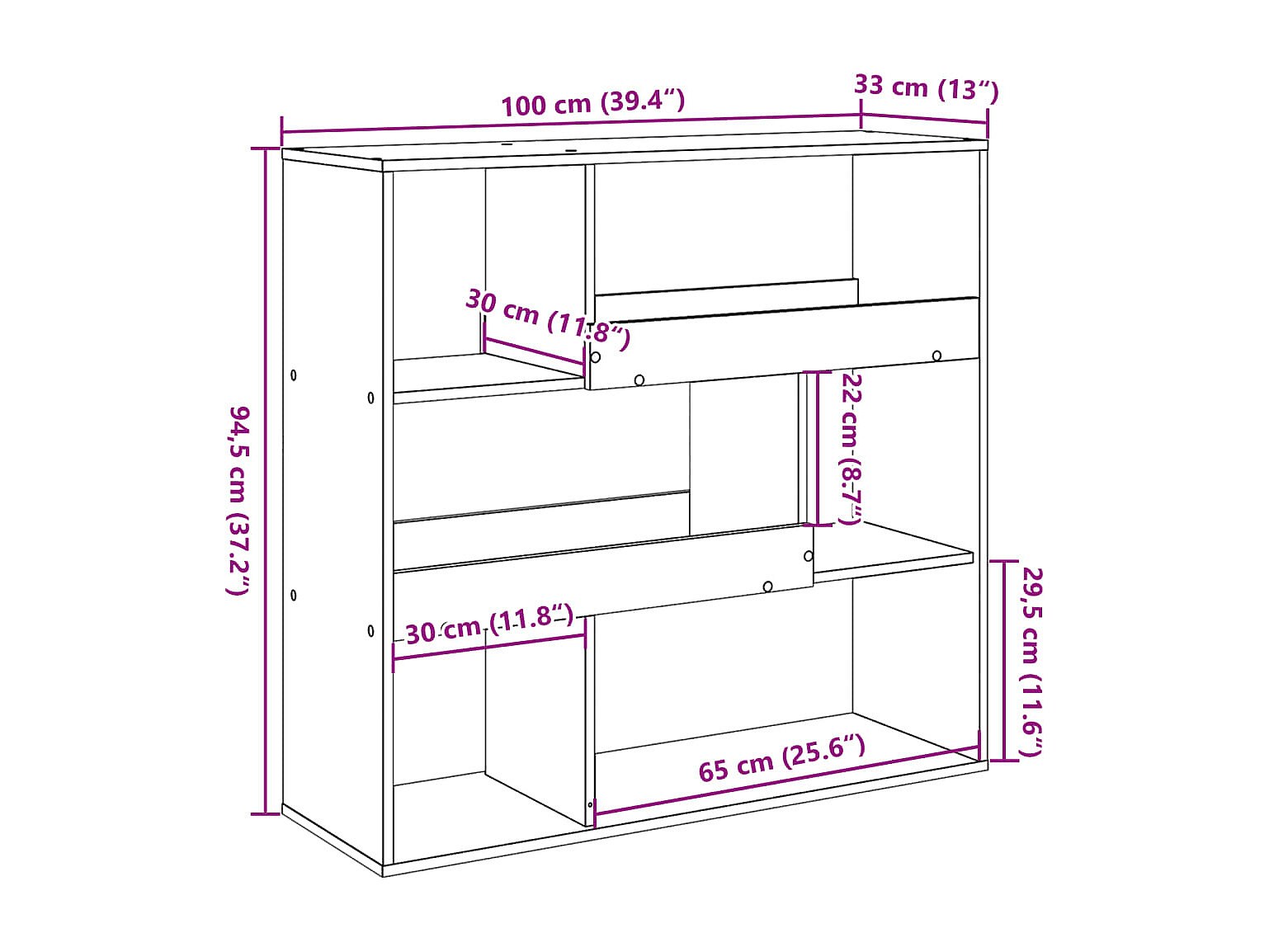 Estantería/divisor de espacios gris hormigón 100x33x94,5 cm