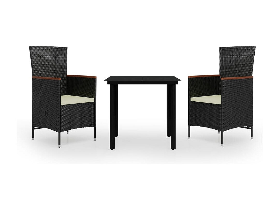 Serafino Juego de comedor de jardín 3 piezas con cojines negro