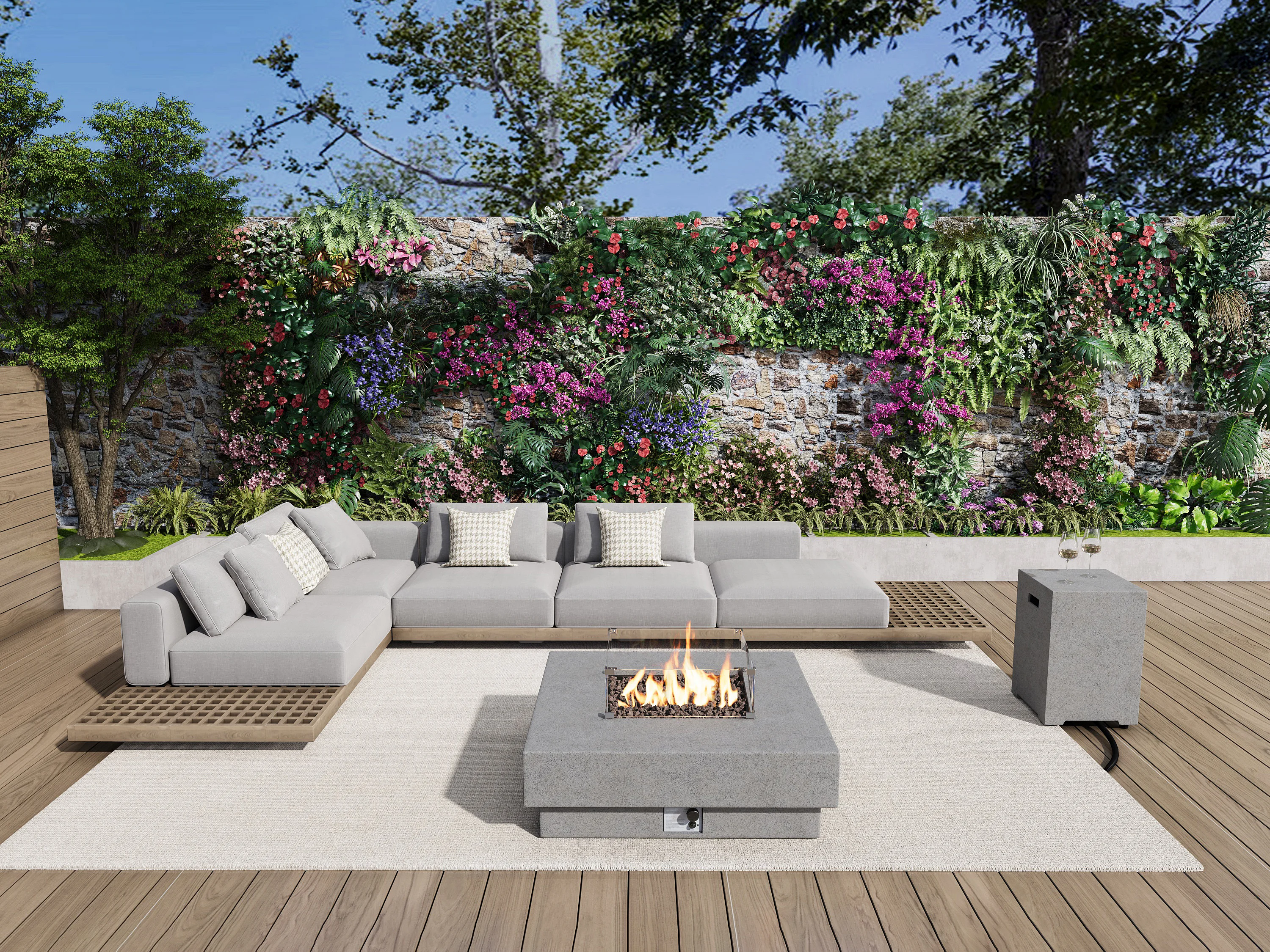 Mesa brasero cuadrada de gas en MGO efecto hormigón - SEROZA