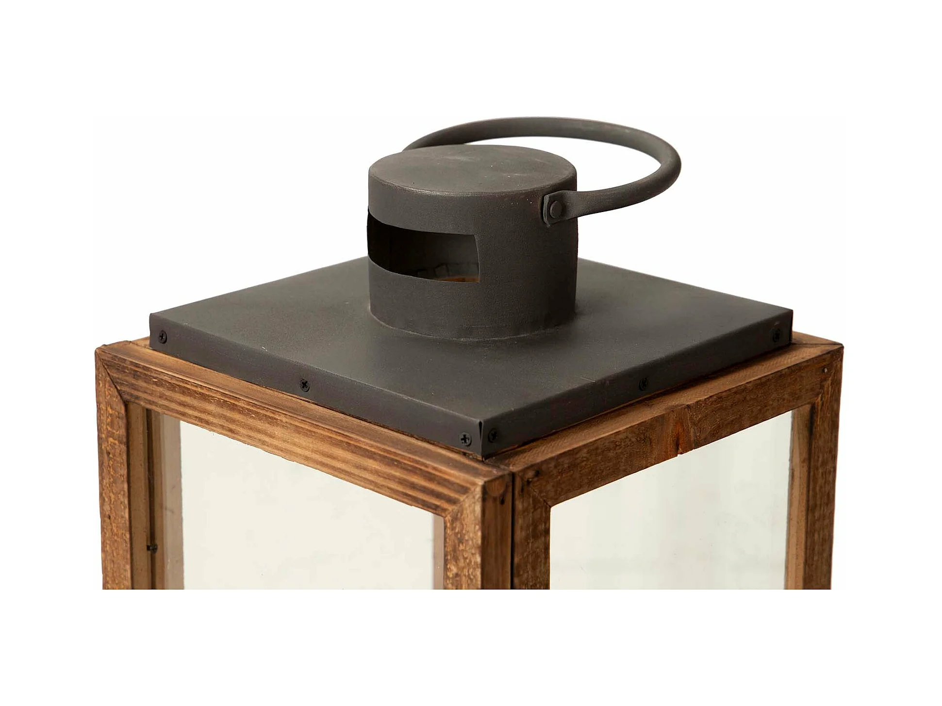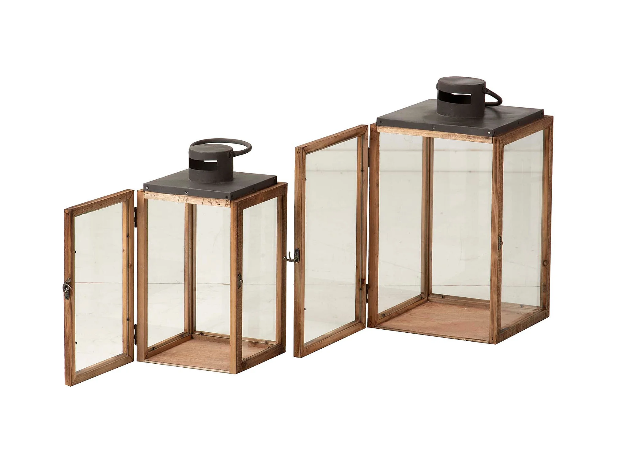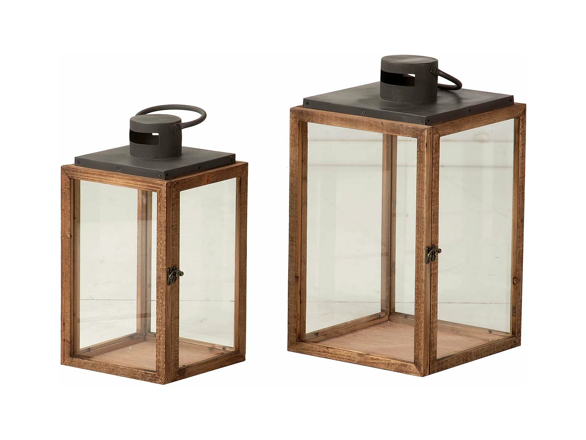 Set 2 Faroles Madera Marron 27x27x48 20x20x40 Cm