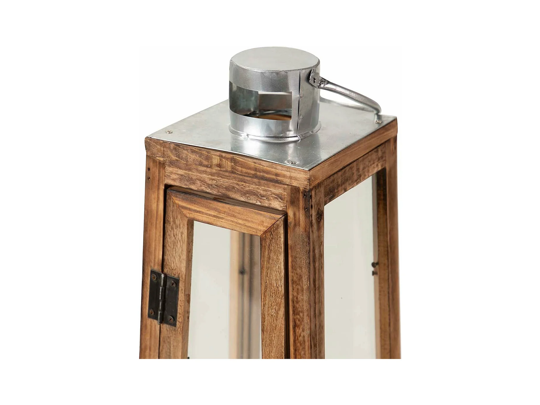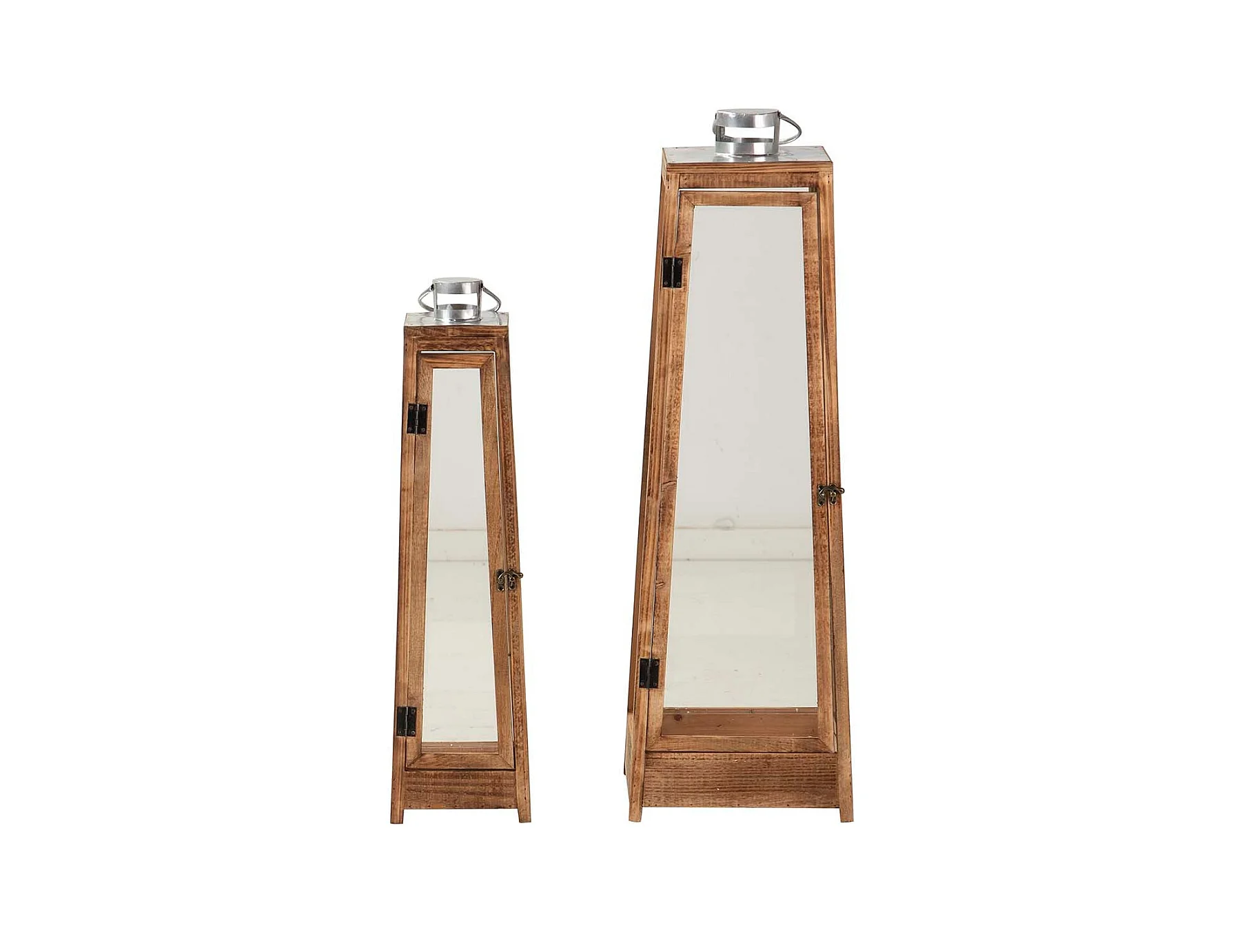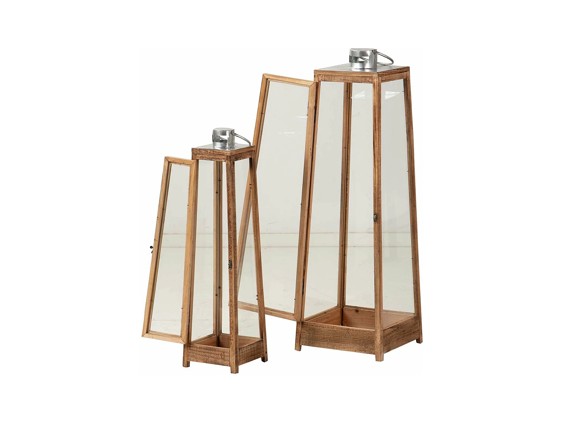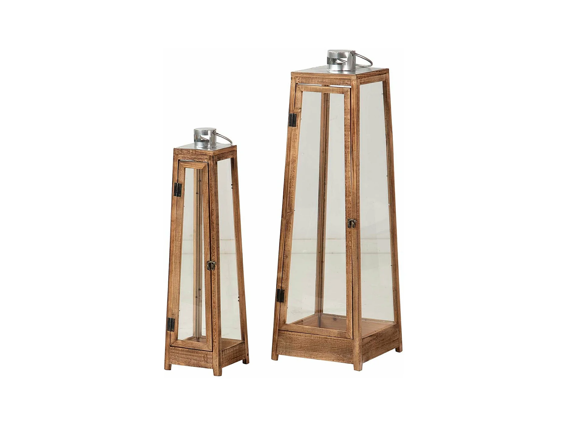 Set 2 Faroles Madera Marron 29x29x90 18x18x69 Cm