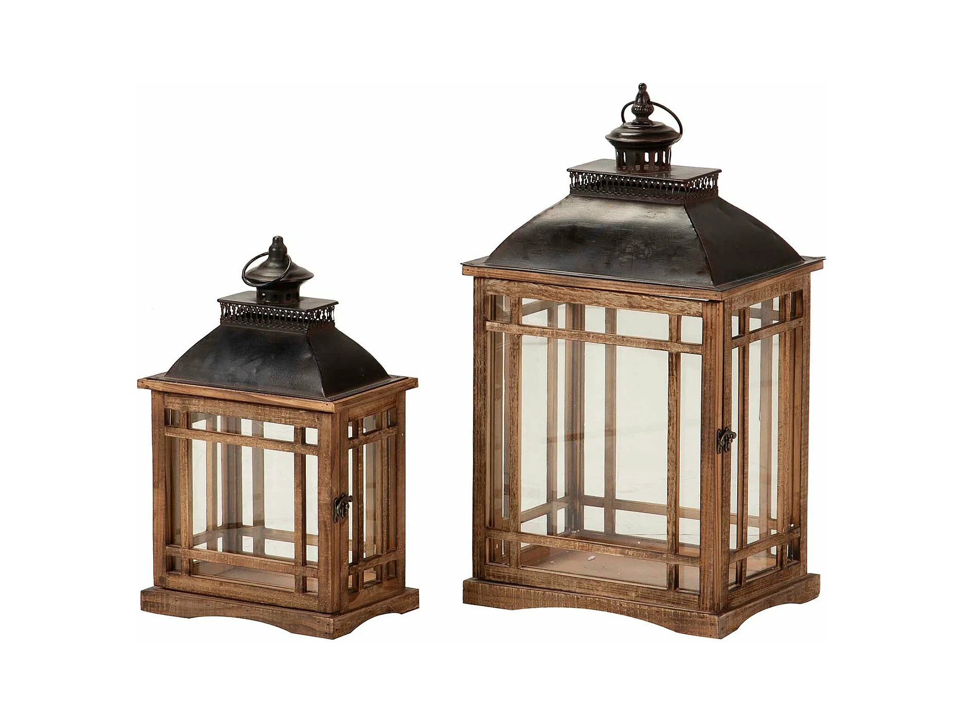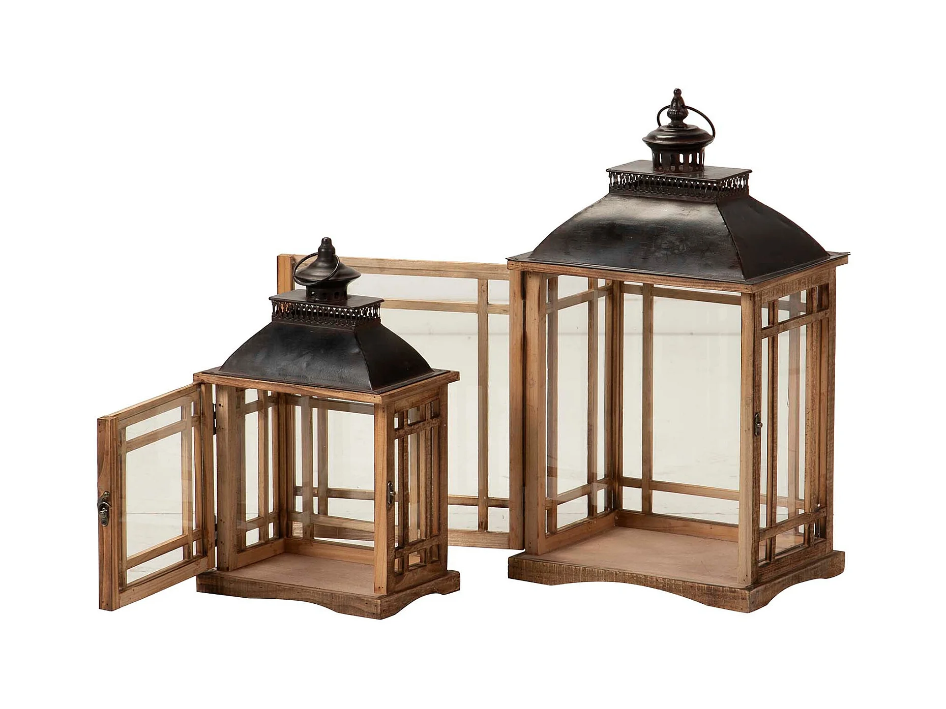 Set 2 Faroles Madera Marron 33x25x60 26x18x43 Cm