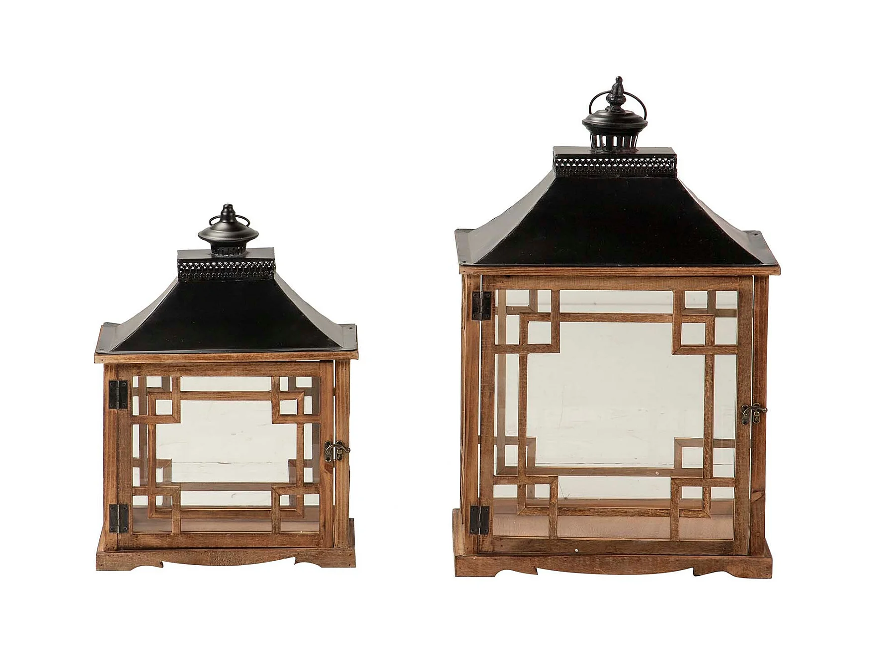 Set 2 Faroles Madera Marron 41x27x61 34x20x46 Cm